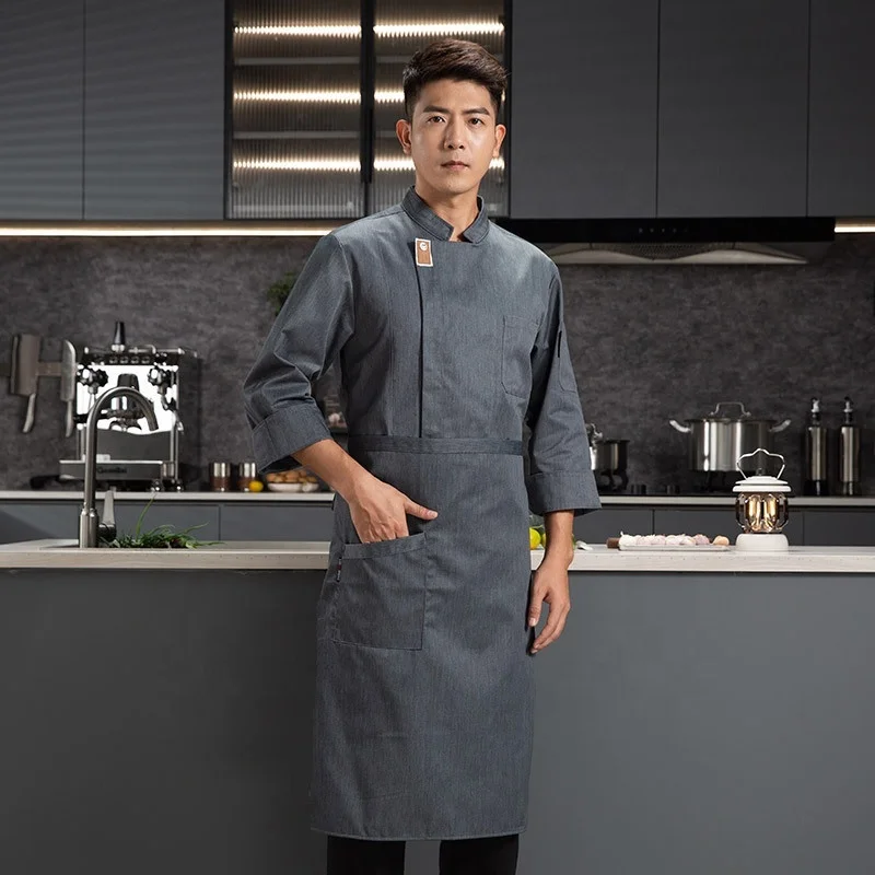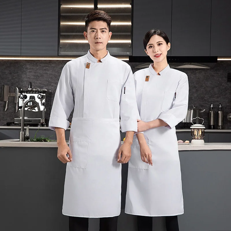 Smiling Chef Cross-Border Workwear for Women Men Twill Long Sleeve Catering Uniforms for Western Restaurant Baking Pastry