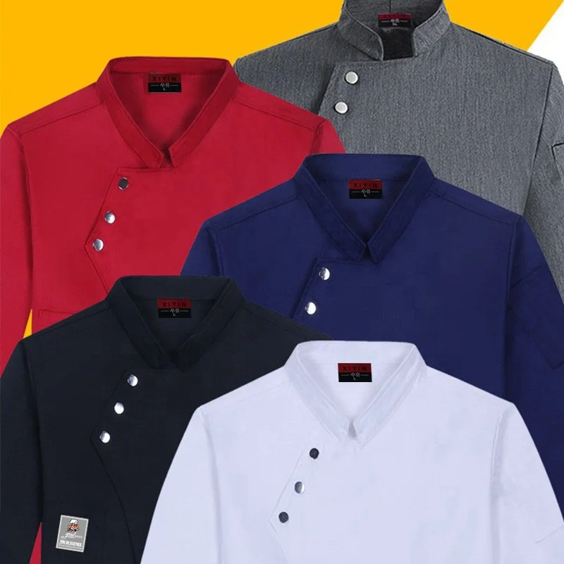 Autumn Winter Long Sleeve Chef Coats for Men Women Twill Restaurant Bar Work Uniform for Cooking Cake Baking Kitchen Staff