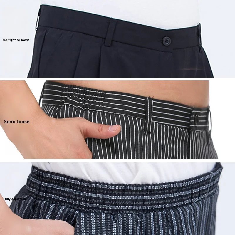 In Stock Wholesale Elastic Striped Chef Work Pants Casual Restaurant Waiter Uniform for Hotels Woven Fabric Accessory for Chefs