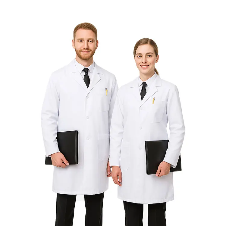 Unisex Long Sleeve Hospital Medical Uniforms Men Women Doctor Nurse White Lab Coat