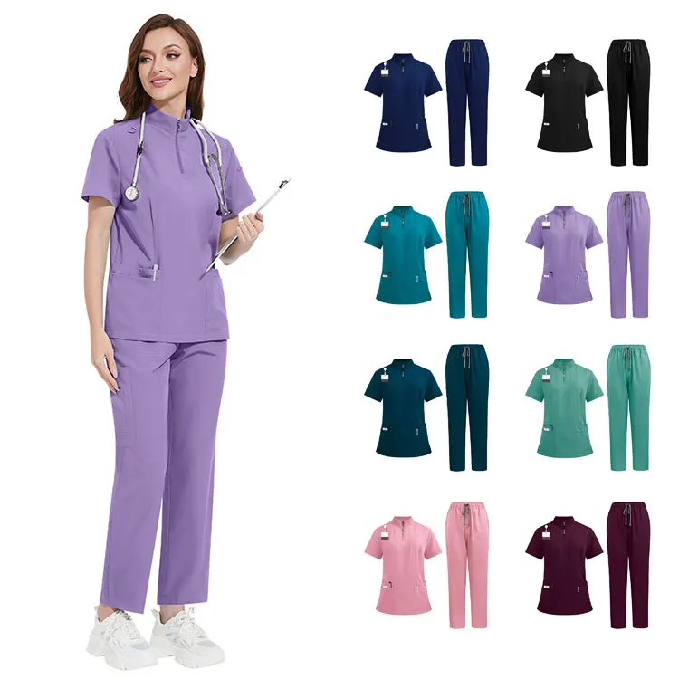 Wholesale Custom Logo Fashionable Scrubs Uniforms Sets Doctor Nurse Uniforms Hospital Medical Women Scrubs Set