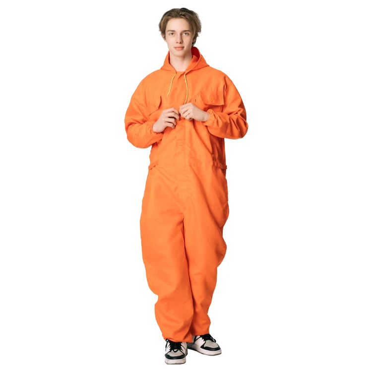 Wholesale Custom Men Work Coverall Long Sleeve Overalls Mechanics Coveralls Hooded Workwear Jumpsuit