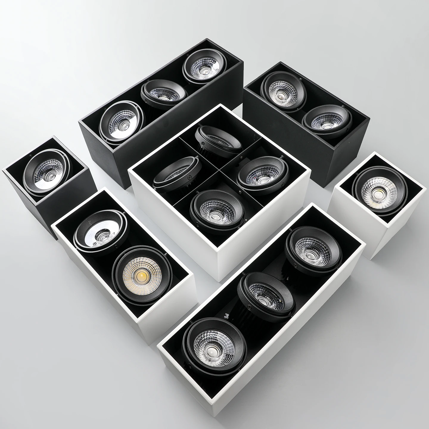 Modern 12W H125mm Spot Lights Aluminum LED Ceiling Light White Square Surface Mounted 1-Head Adjustable Beam Angle Led Spotlight