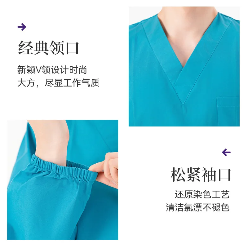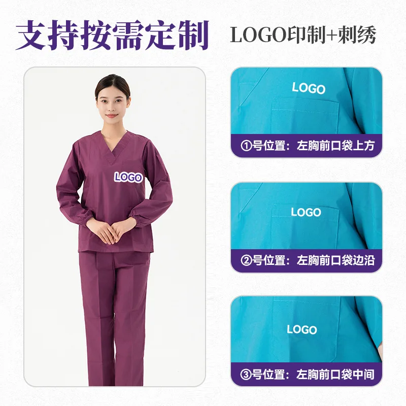Long-sleeved, dark green cotton, men's and women's woven, beauty, pet, oral, work, medical and hospital uniform, frosted set