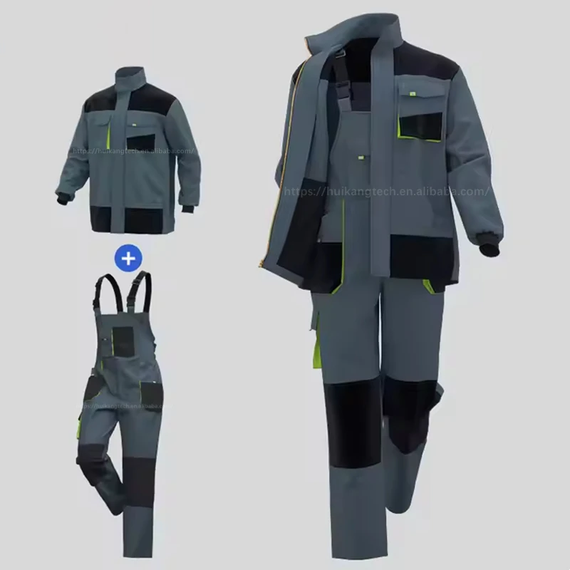 Custom Breathable Work Coverall for Men Work Bib Pants Multi-Pocket & Embossed Print for Construction Workwear Jackets