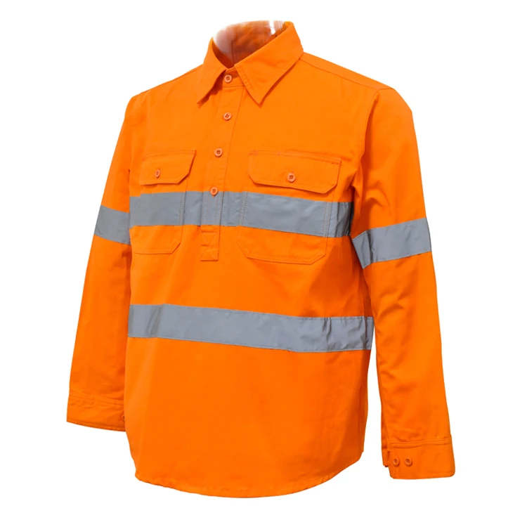 100% Cotton Long Sleeve Reflective Work Shirts for Construction Repair Auto Plant Factory Mining Safety Hi Vis Work Clothing