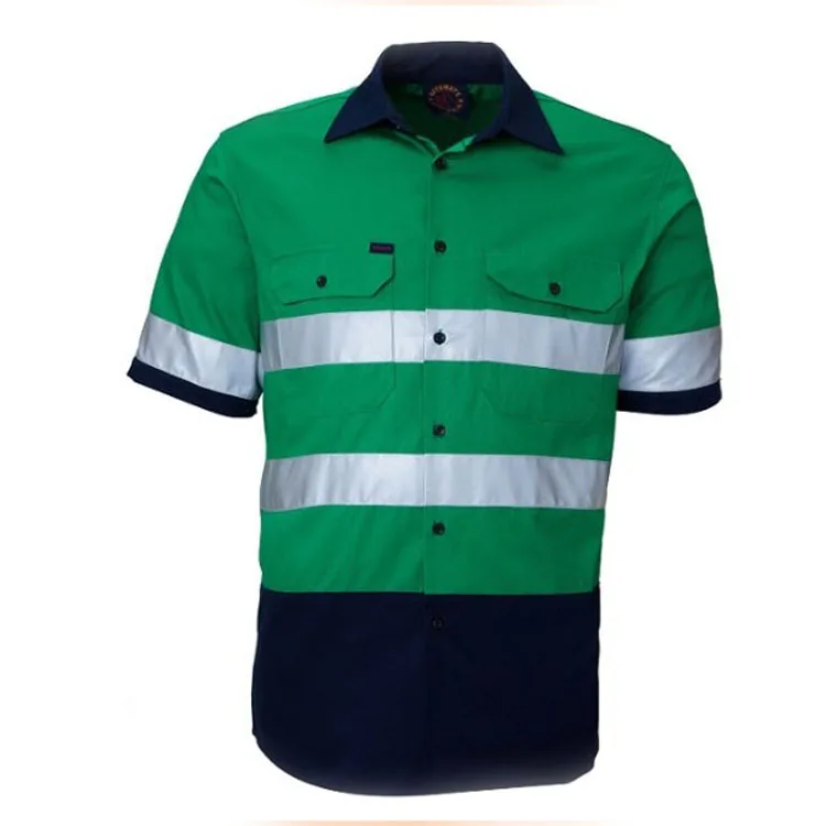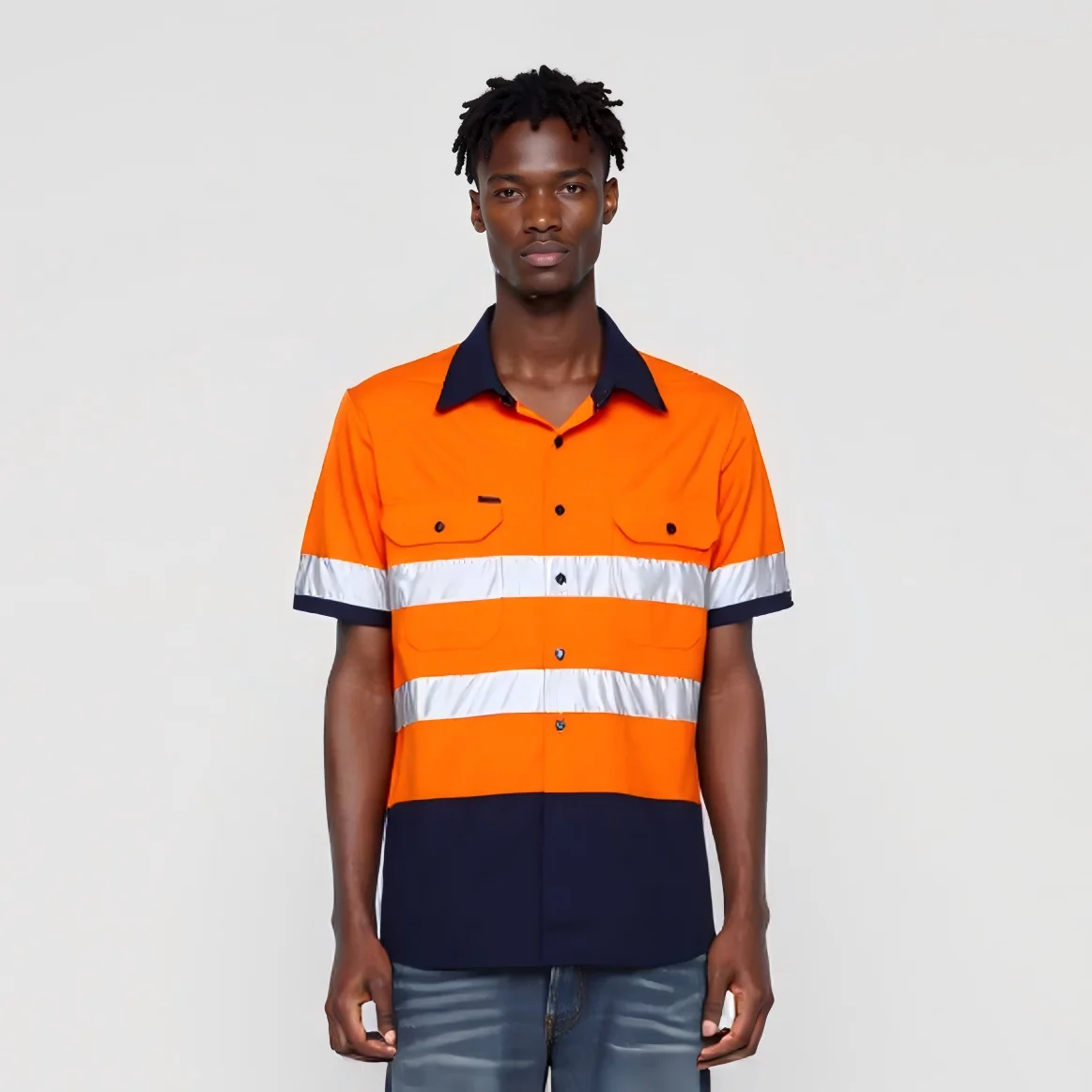 Men Short Sleeve Hi Vis Work Shirt with Reflective Tape Industrial Safety Workwear Clothing for Outdoor Jobs