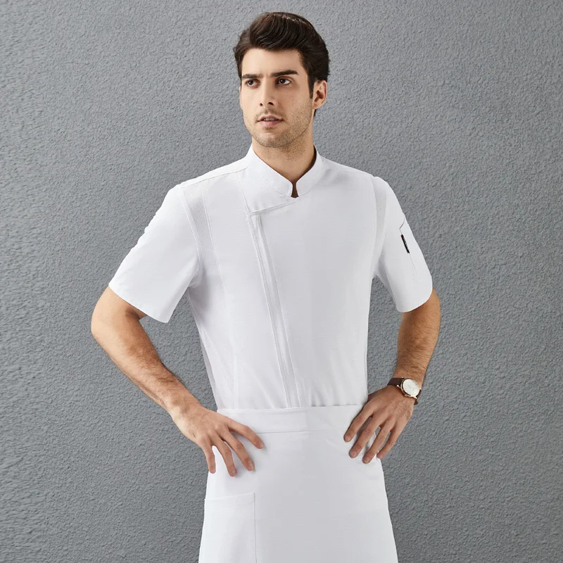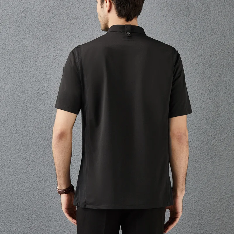 Custom Logo Short Sleeve Breathable Mesh Chef Jacket Design Kitchen All Black Zipper Chef Uniform