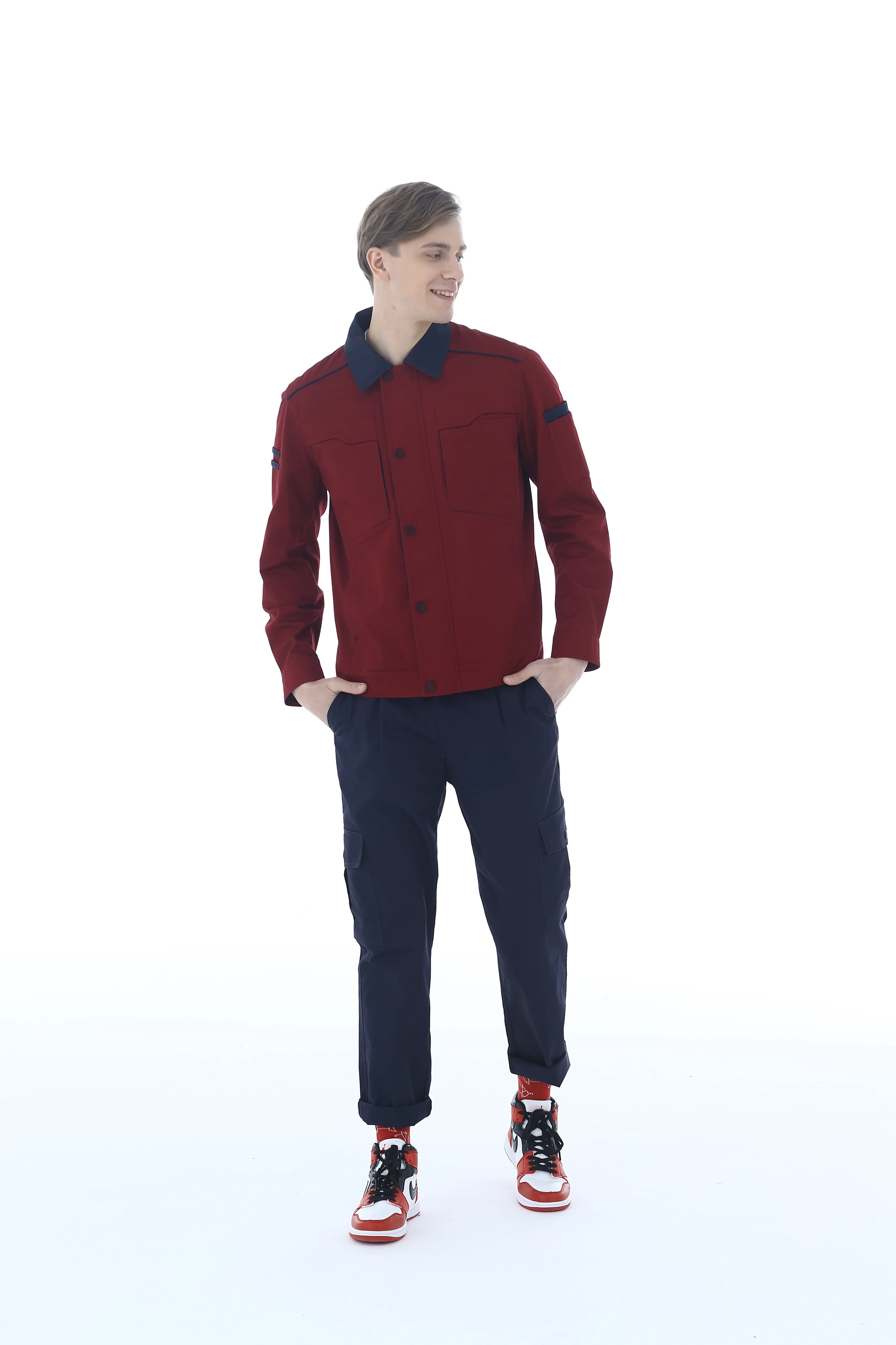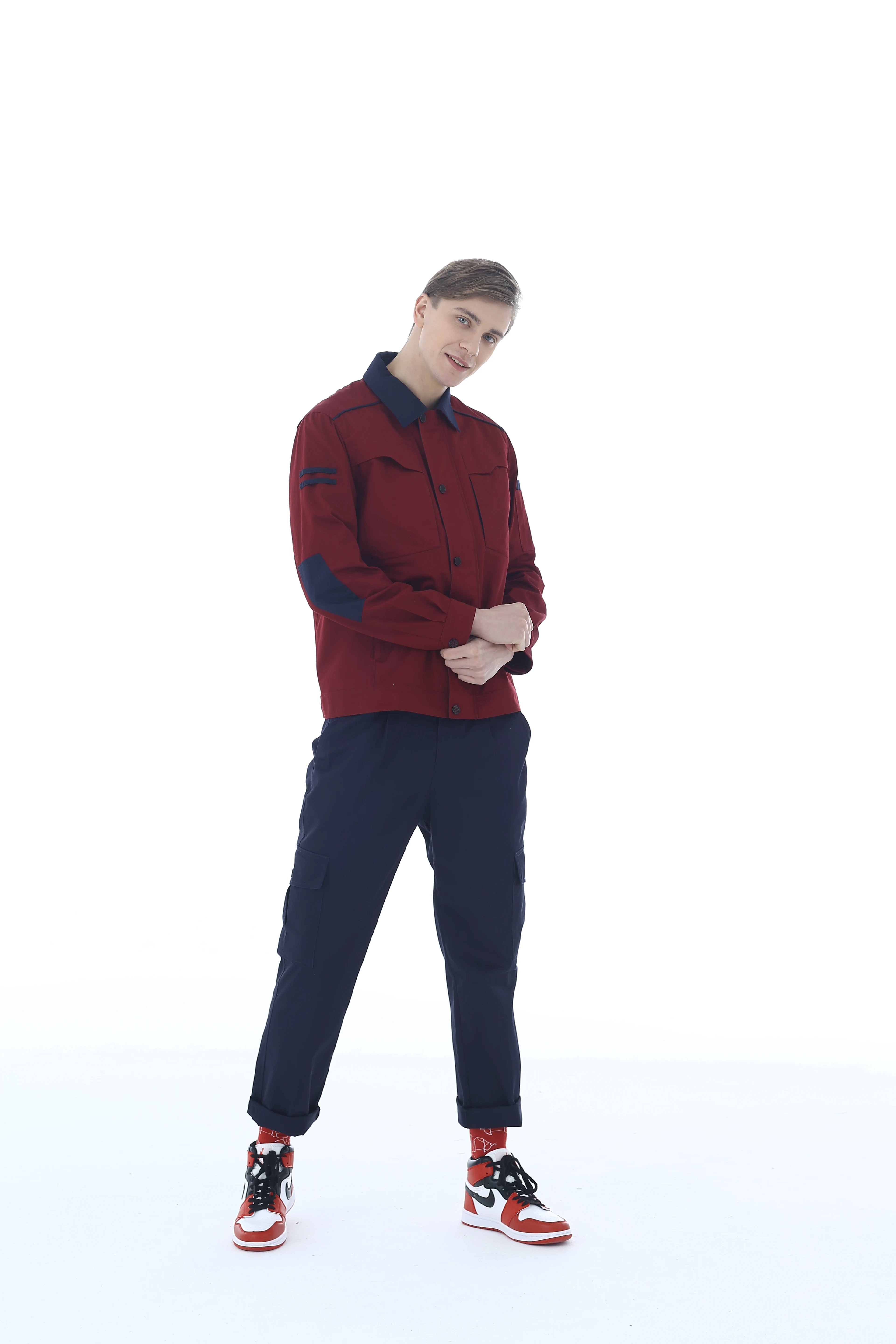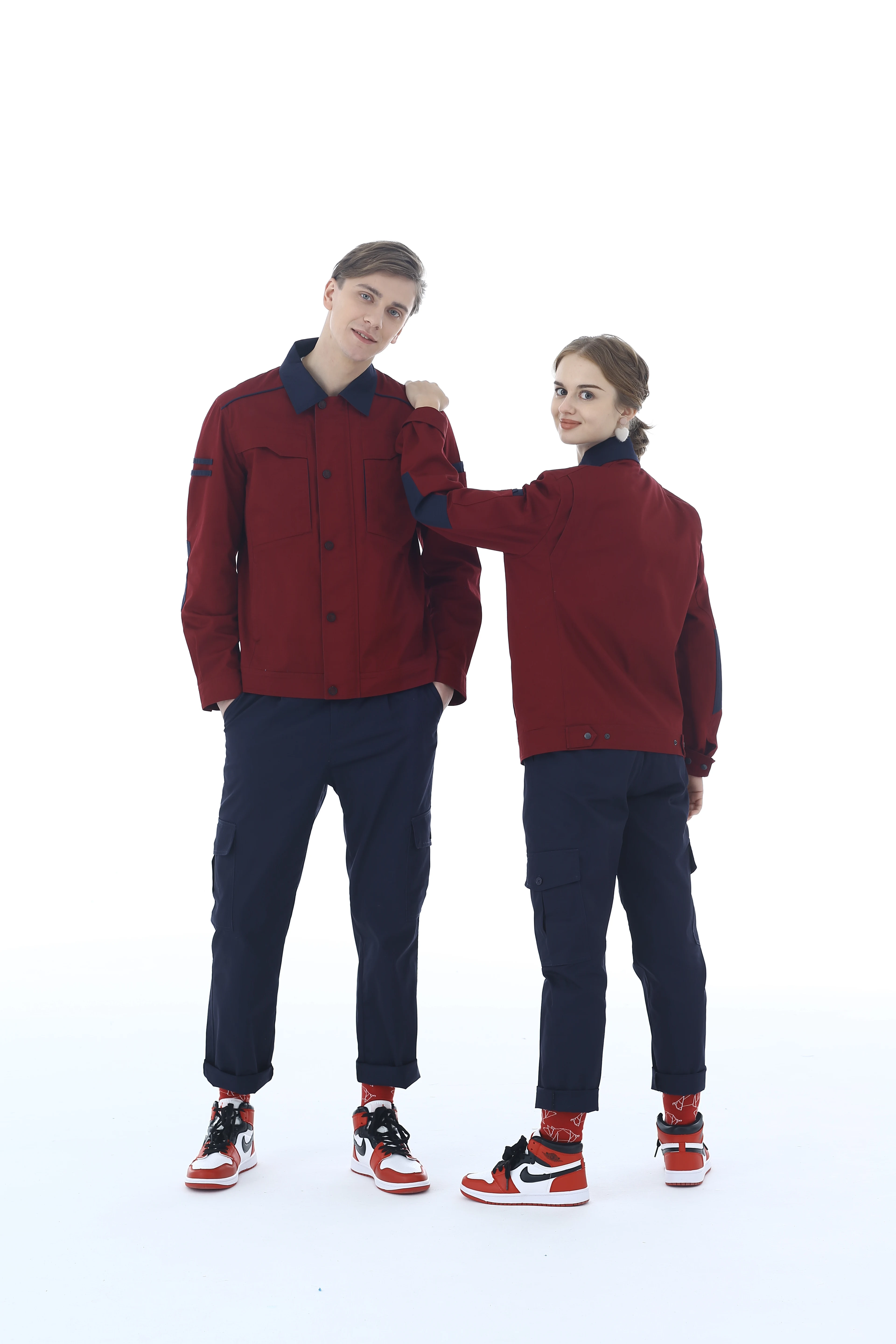 Long Sleeve Anti-Static Spandex Work Uniform Customized Overalls Comfortable Breathable Blue Navy Blue Unisex Workshop Use