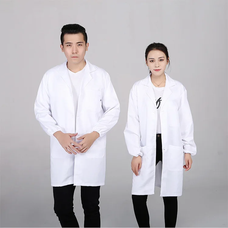 Customizable White Long Sleeve Spandex Lab Coat for Food Factory Dust-Proof Workshop Labor Protection Protective Work Clothes