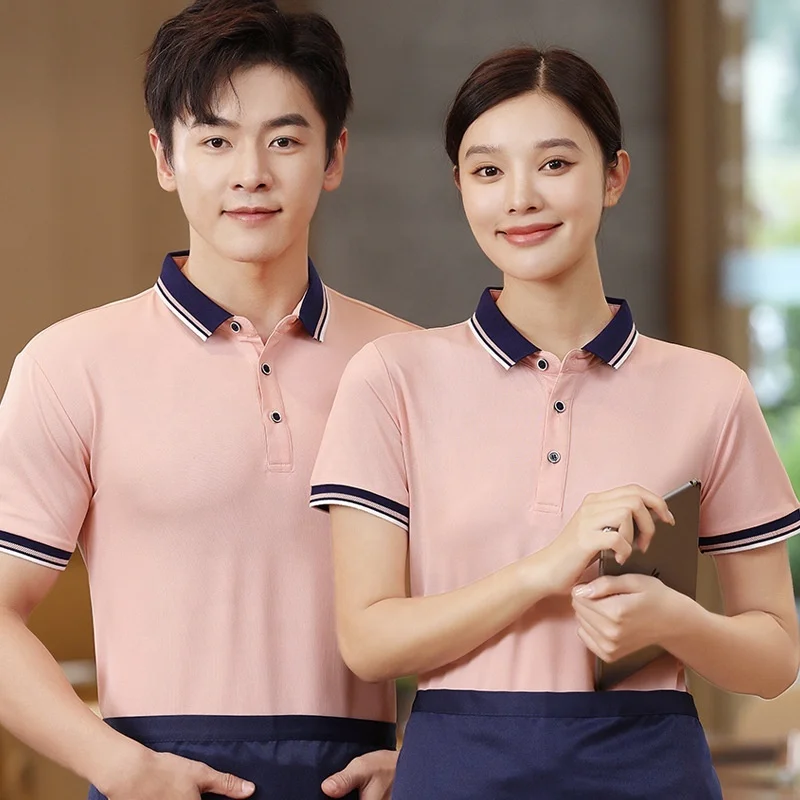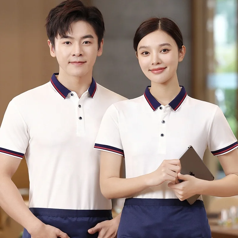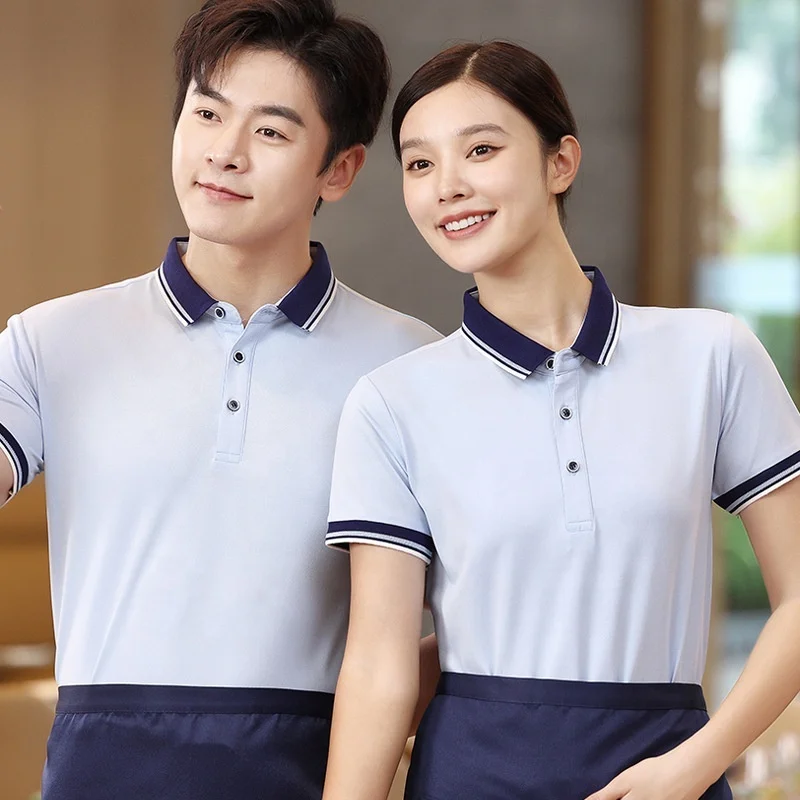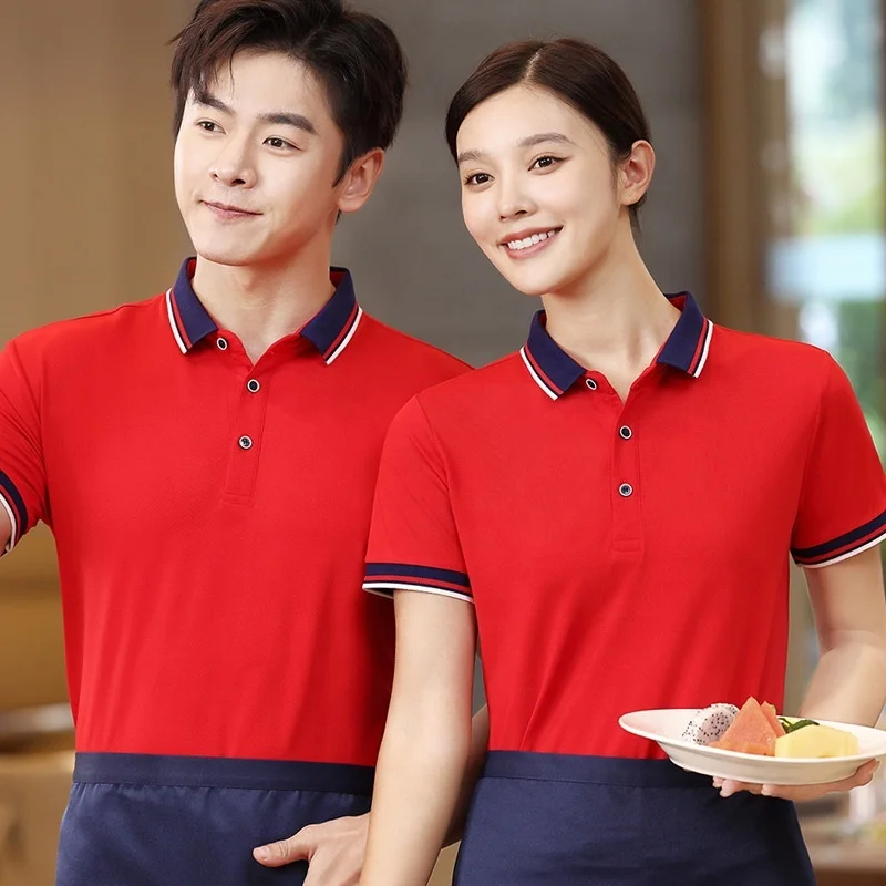 Summer Catering Workwear Anti-Pilling Solid Casual Blank Jersey Short Sleeve Printed Logo Restaurant Hotel BBQ Shop Men's