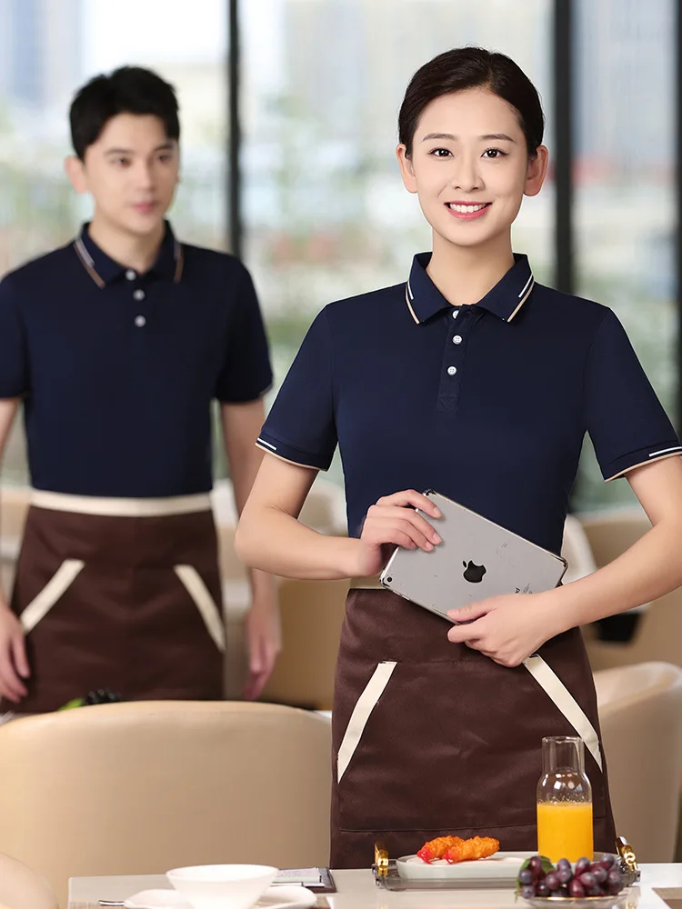 High-end Combed Cotton Solid Anti-pilling Catering Waiter Work Clothes Short-sleeved T-shirt Customized Men's Lapel Shirt