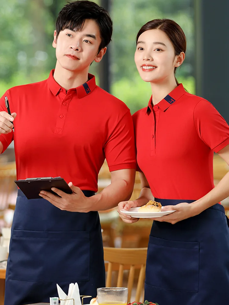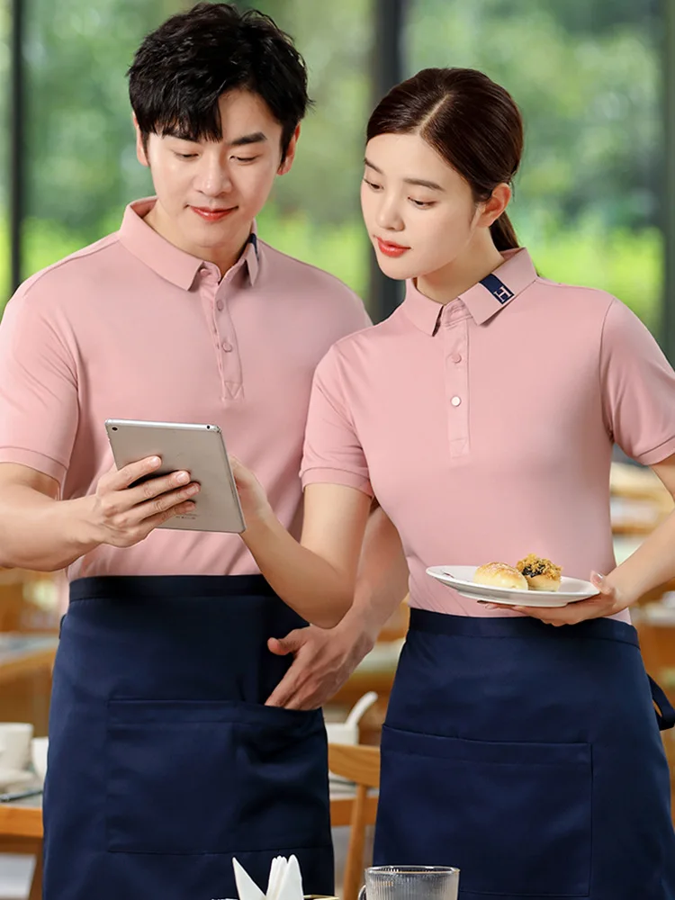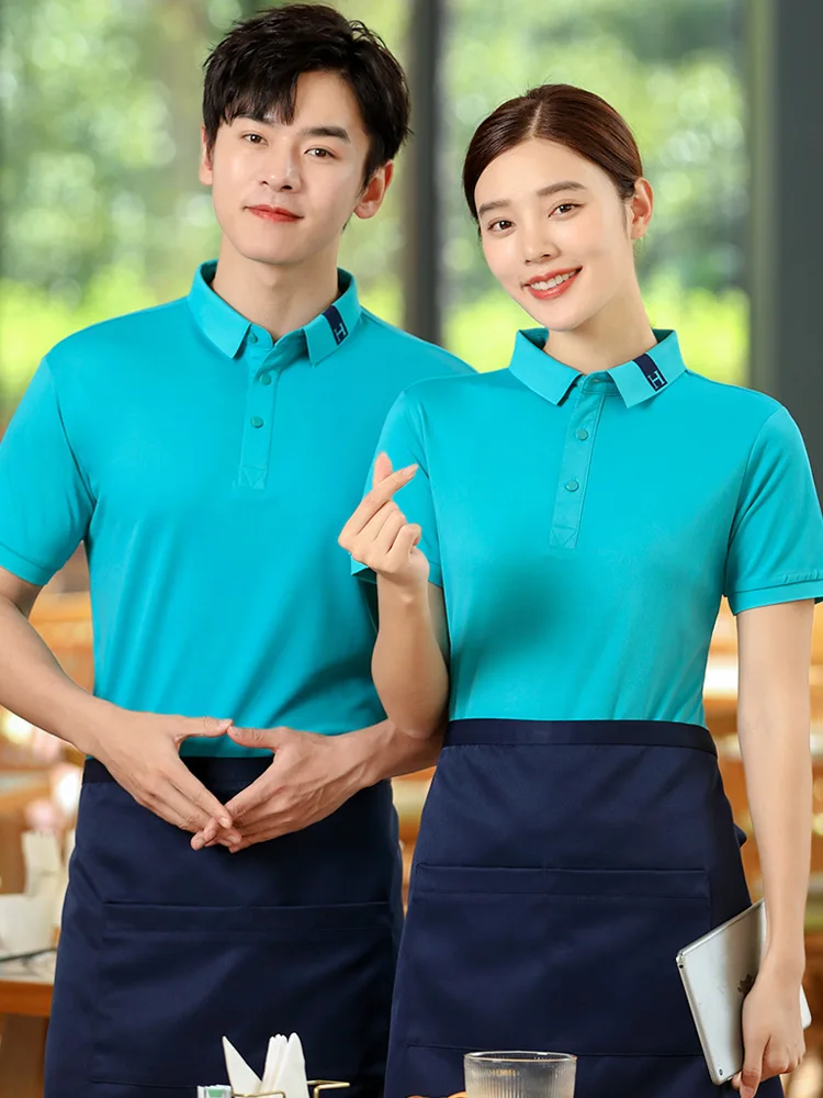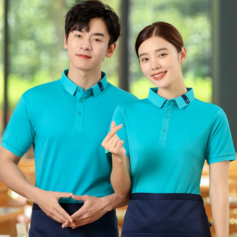 Overalls Short-sleeved Polyester/Cotton Unisex Summer Catering Restaurant Hotel Reception Uniform Digital Print