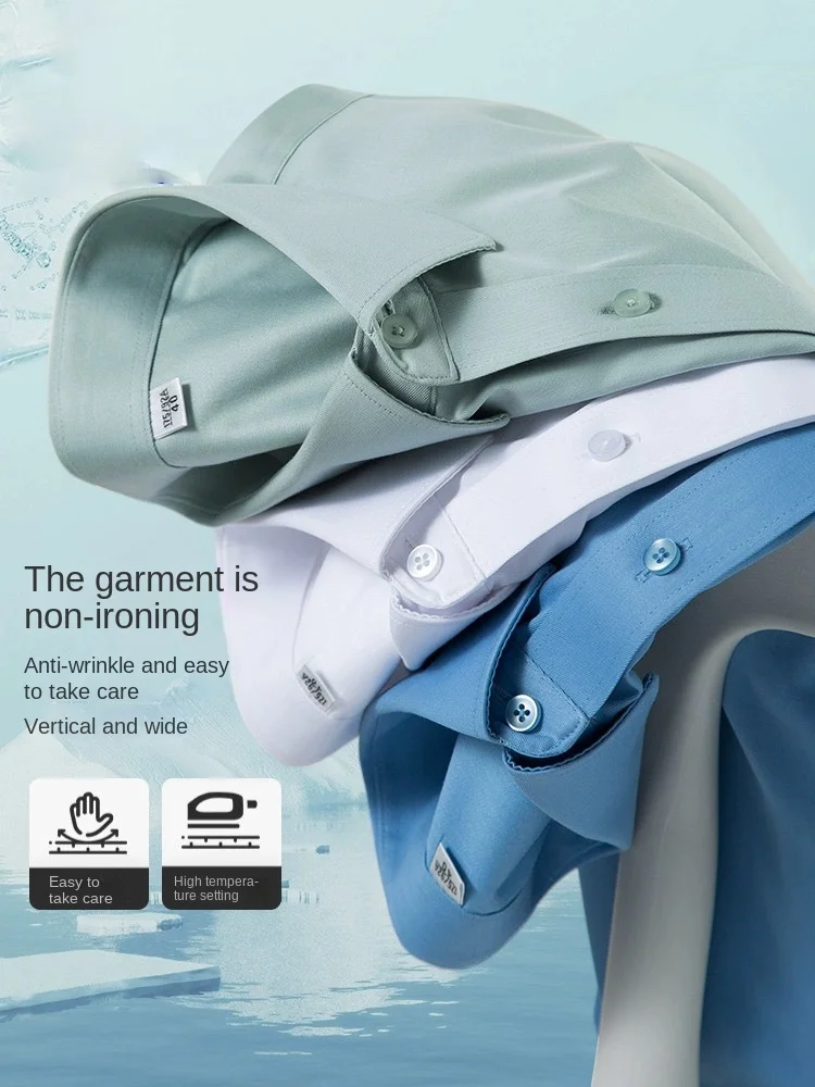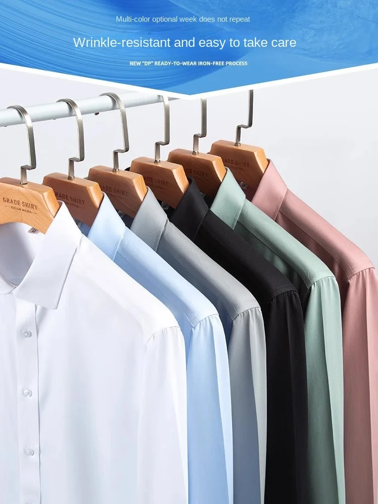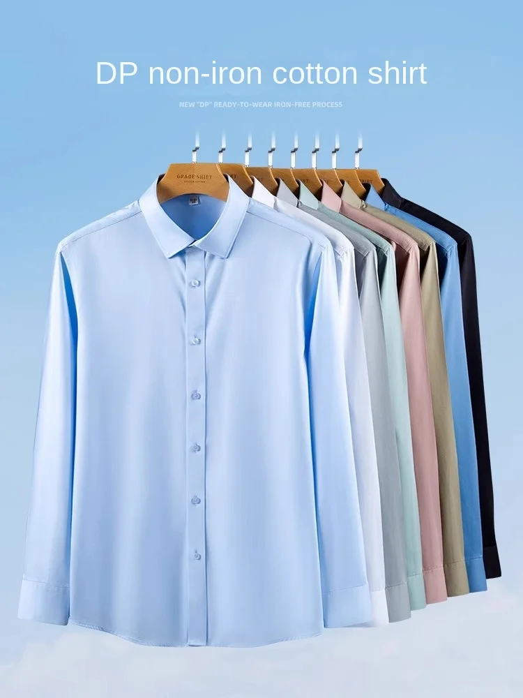 Men's Professional Cotton Twill Knitted Overall Shirt Long Sleeve Business Casual Solid Color No-Iron for Spring Season Work Use