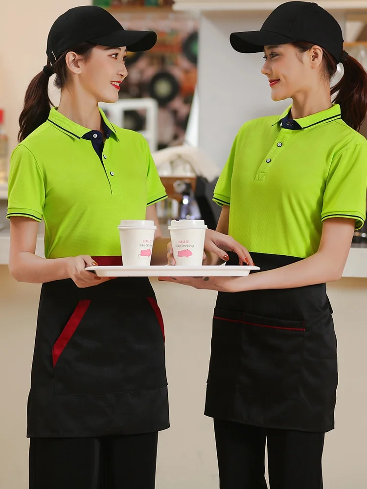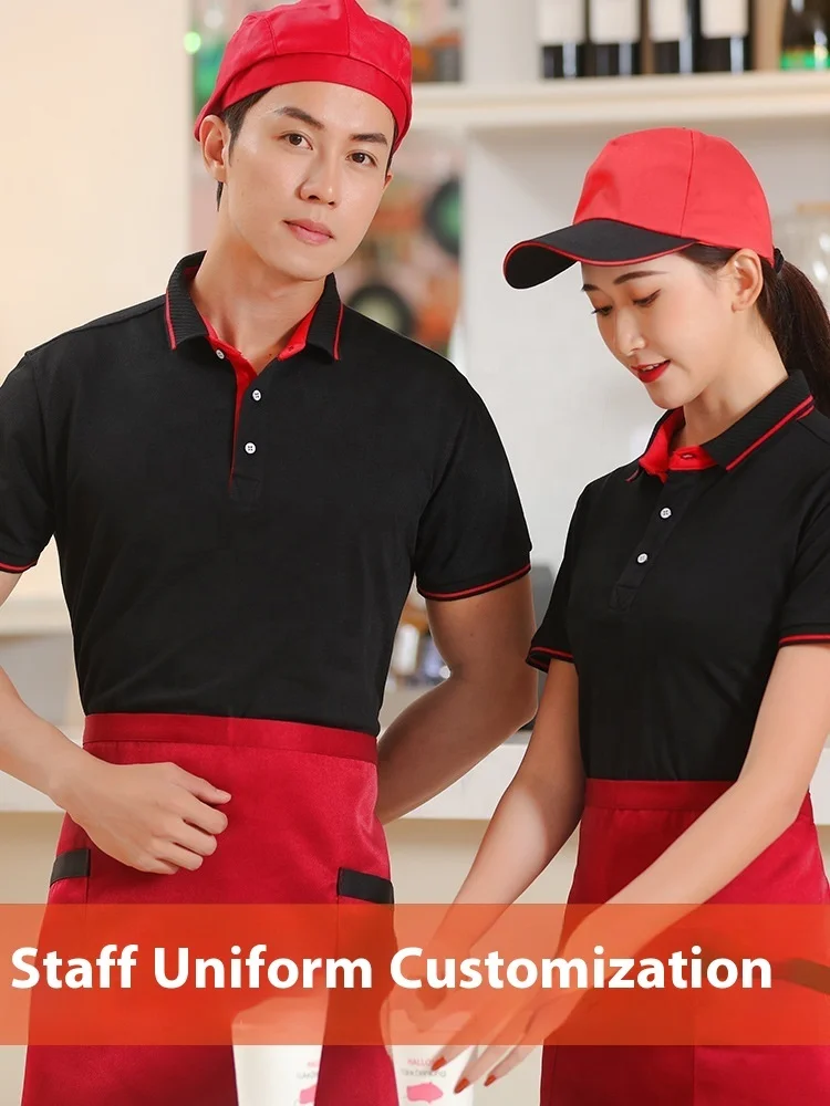 Unisex Custom Summer Short Sleeve for Polo Shirt 100% Polyester Catering Waitress Work Clothes for Hot Pot Shops Milk Tea