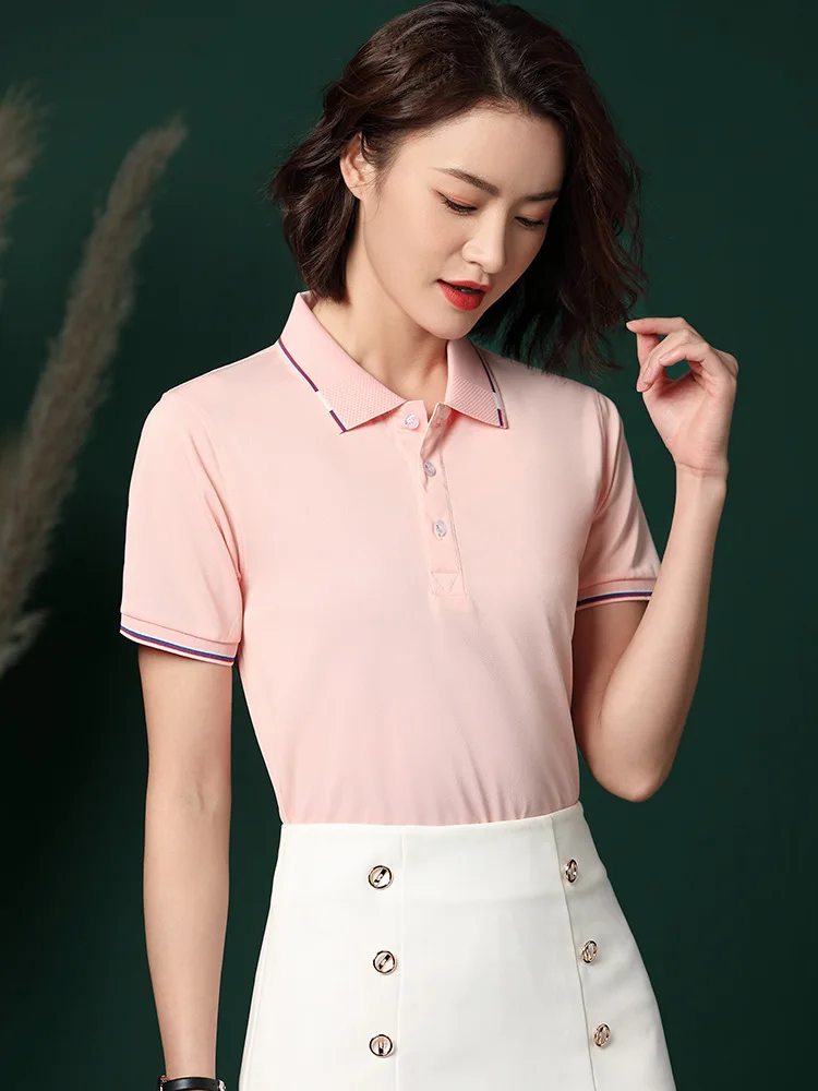 Men's High Short-Sleeved for POLO Shirt Jersey Factory Wear T-Shirt for Summer Work Group Culture Advertising Adhesive Print