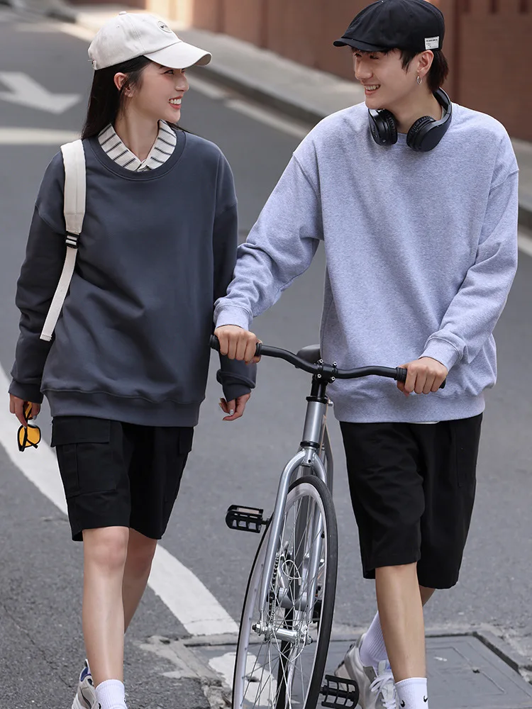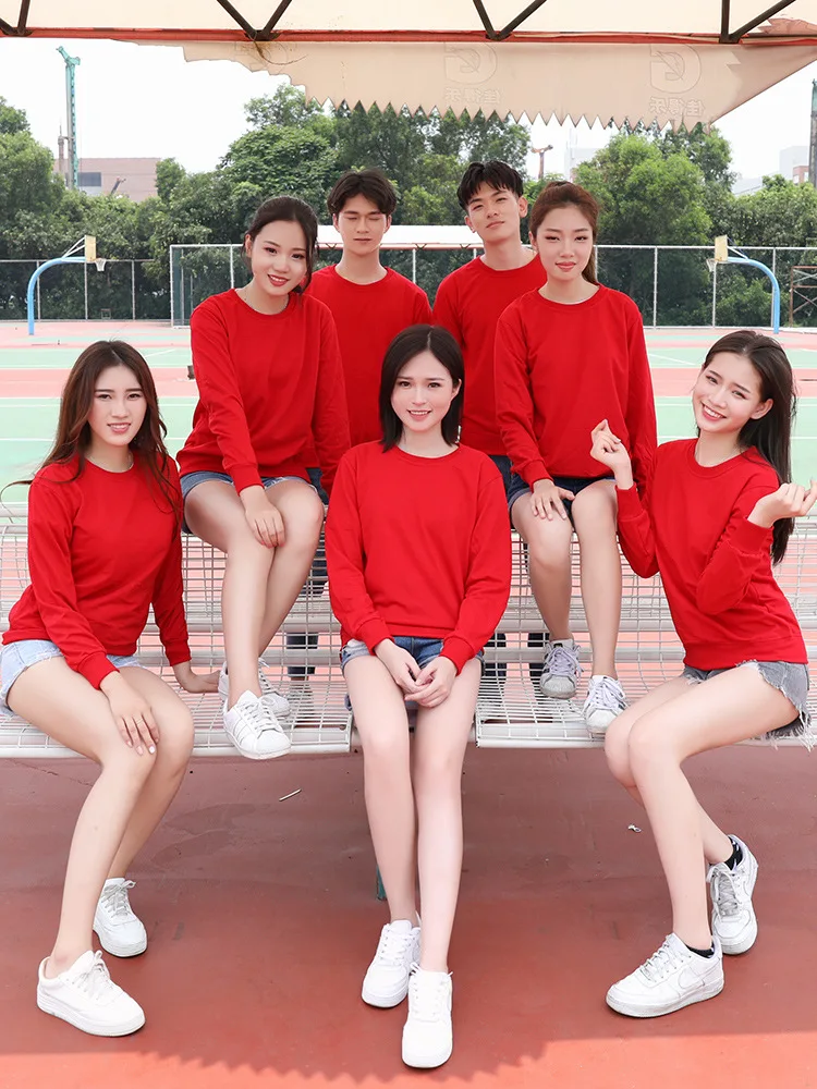 Autumn Winter Men's Group Sweater Long Sleeve Plus Velvet Padded 100% Cotton Wholesale Cultural Advertising Shirt Overalls Solid