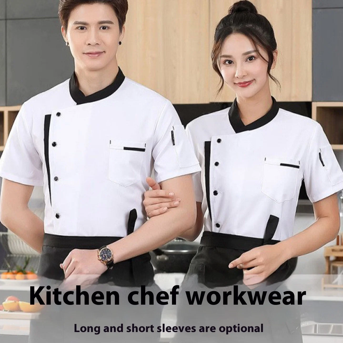 Men's Women's Chef Clothing for Summer Work Twill Long Short-Sleeved Restaurant Bar Cake Shop Uniforms for Hotels Kitchen Use