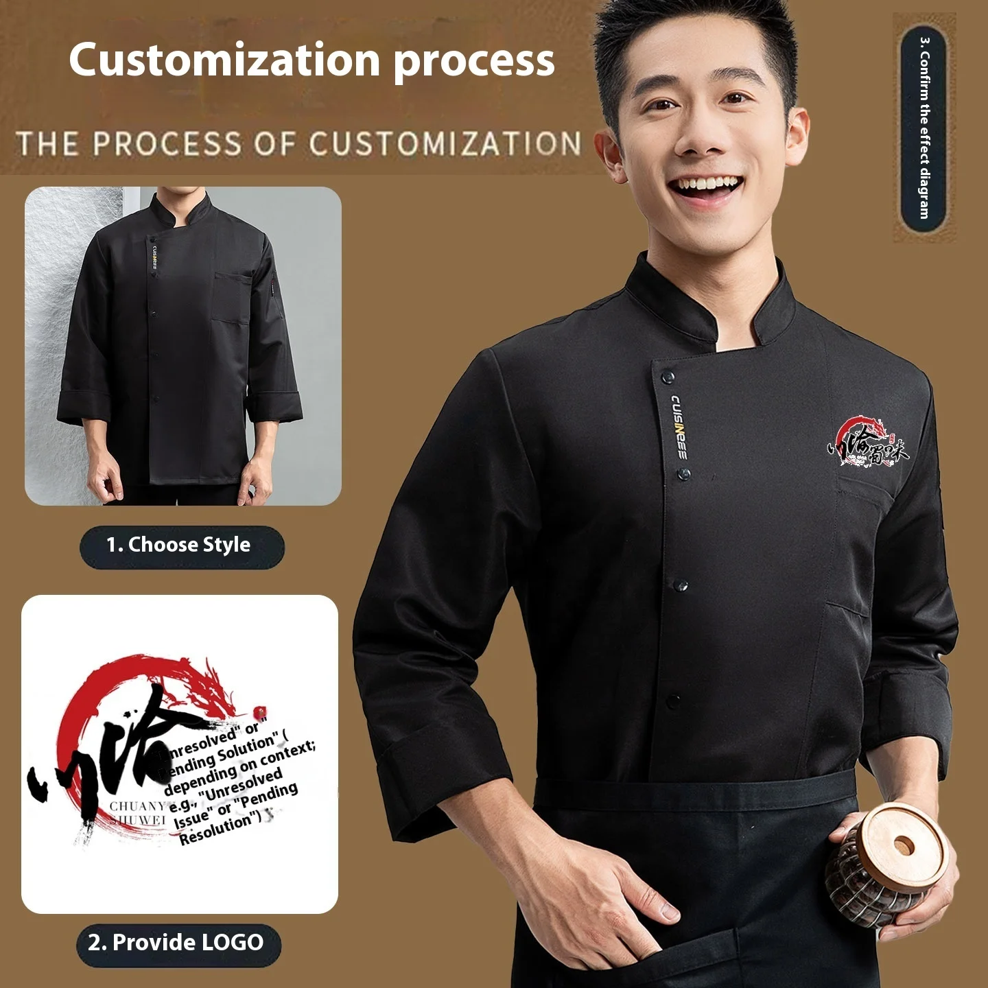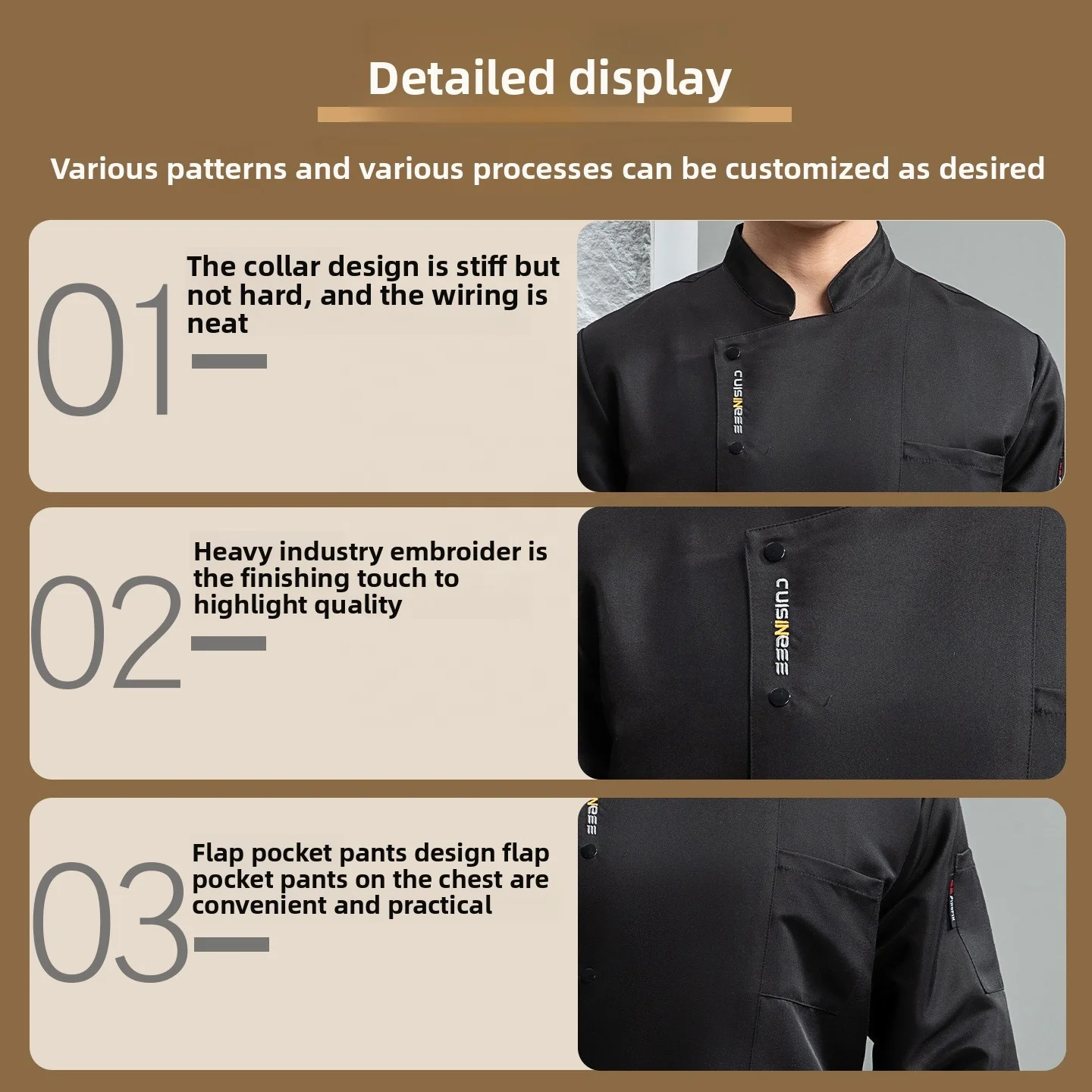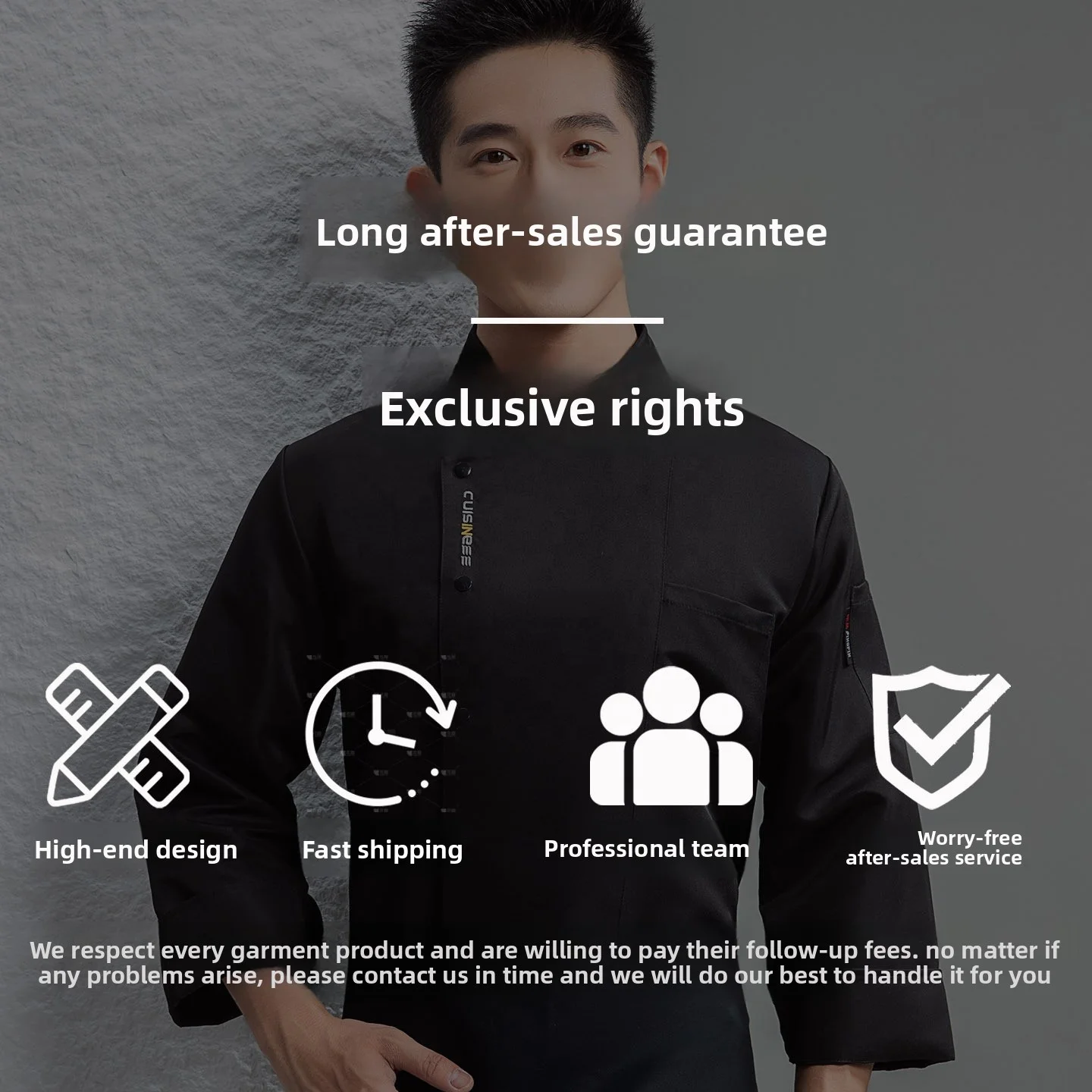 Autumn Winter Elegant Men's Restaurant Bar Uniforms Chef's Long Waterproof Jacket Breathable Kitchen Aprons Woven Tops Sets for