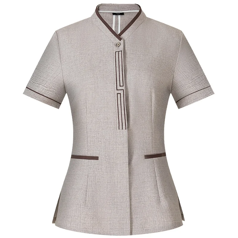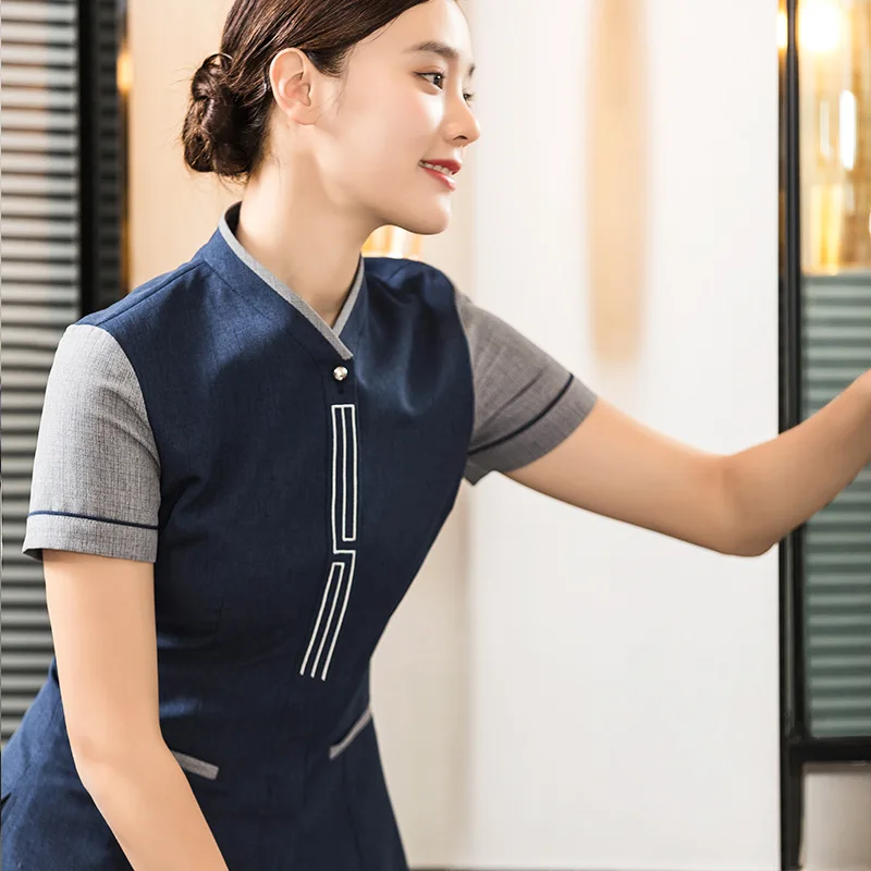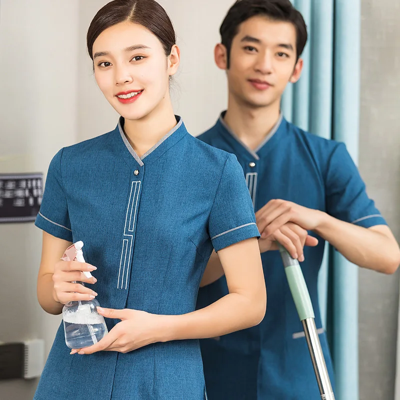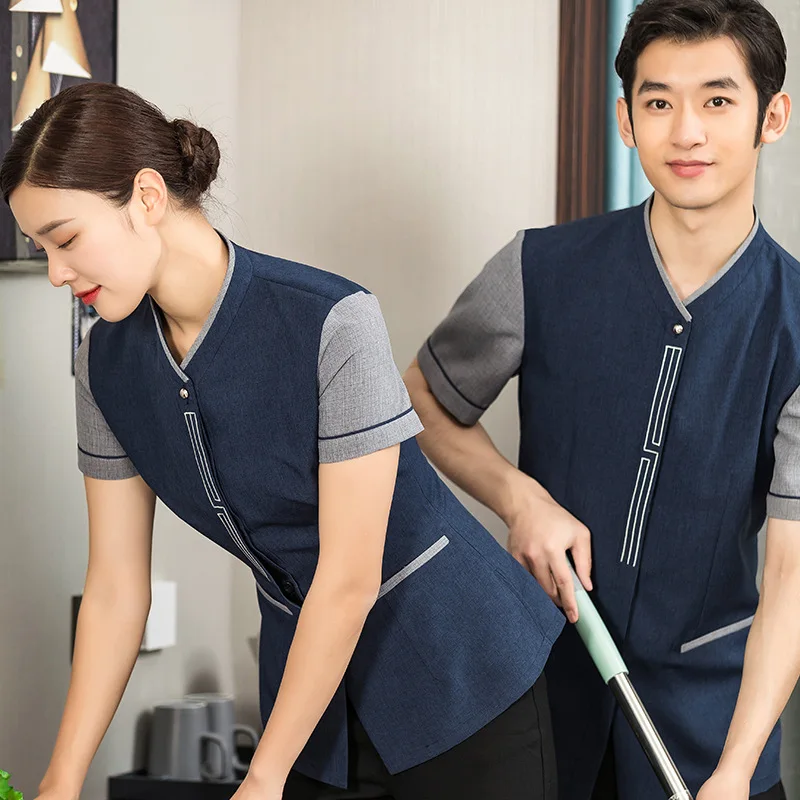 Summer Hotel Room Attendant Work Clothes for Men Women Short-Sleeved Housekeeping Cleaning Uniforms Staff Chef Type for Hotels