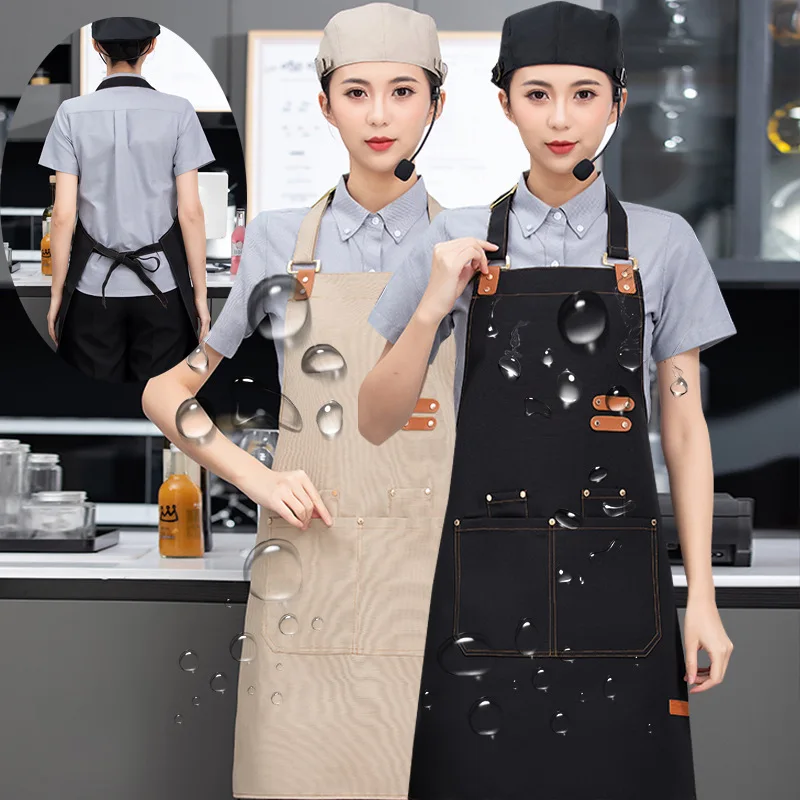High-End Minimalist Canvas Apron Waterproof Oil-Proof Coverall for Kitchen Painting Barista Workwear for Home Restaurant Use