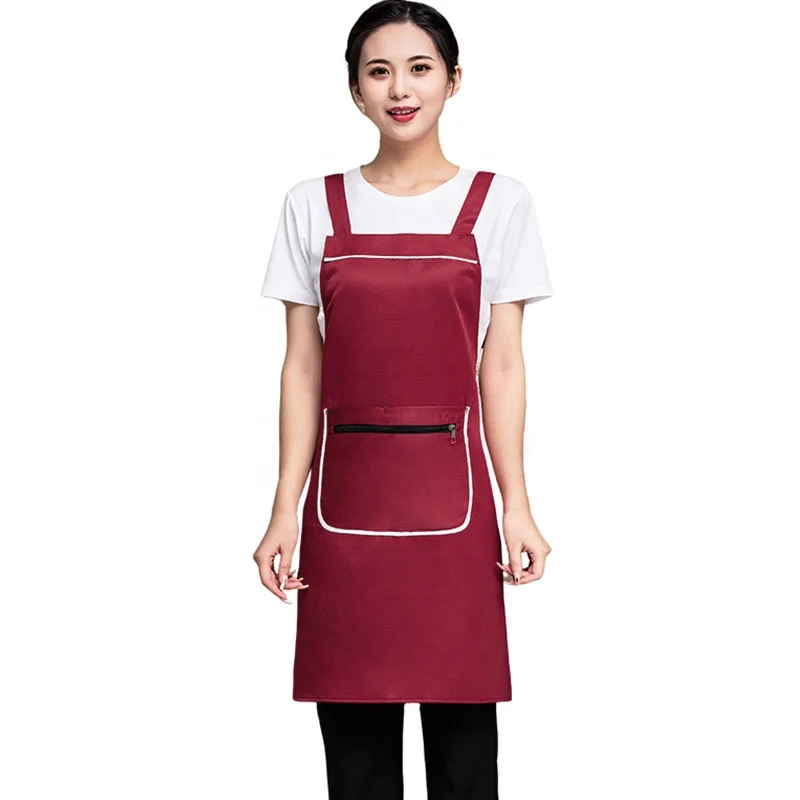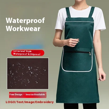 2026 Custom Logo Printing New Style Zipper Pocket Apron Waterproof Canvas Workwear for Catering Kitchen Restaurant Bar Uniforms