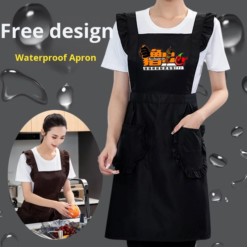 Korean Style Waterproof Lace Apron for Women Fashionable Kitchen Coffee Shop Workwear for Cake Baking Restaurant Bar Uniforms