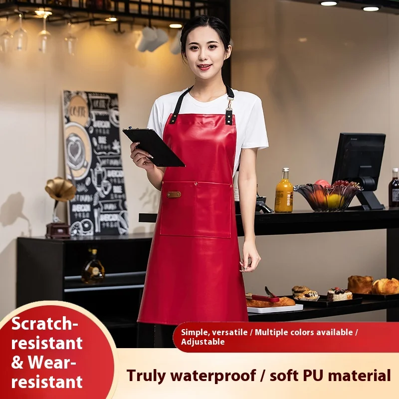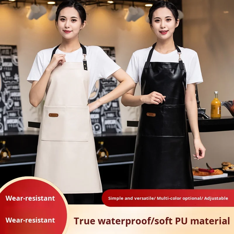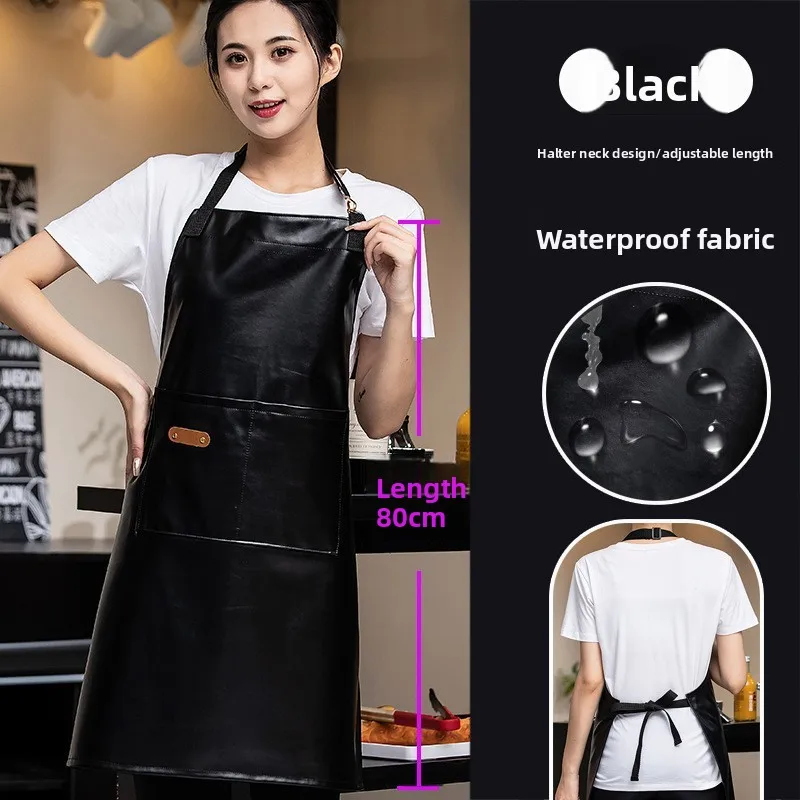 Soft PU Leather Waterproof Oil-Proof Apron Fleece Lining Warmth Restaurant Bar Waitstaff Uniform for Men Women for Milk Tea