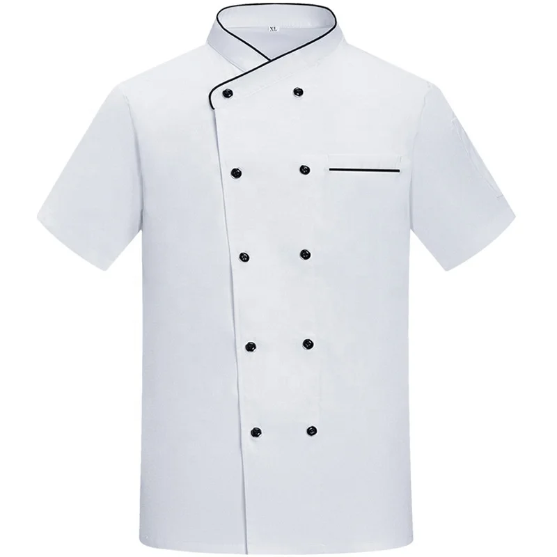 High-End Summer Polyester Cotton French Chef Uniform Short Sleeve Jacket for Men Women for Kitchen Use Baking Cake Decorating