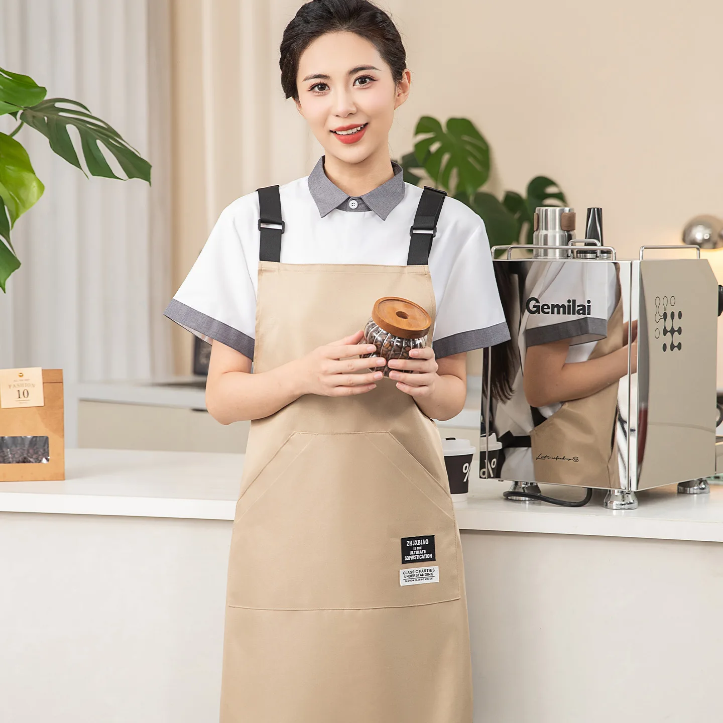 Waterproof Stain-Resistant Canvas Apron Custom Logo for Milk Tea Fruit Shops Restaurants Wholesale Restaurant Bar Uniforms
