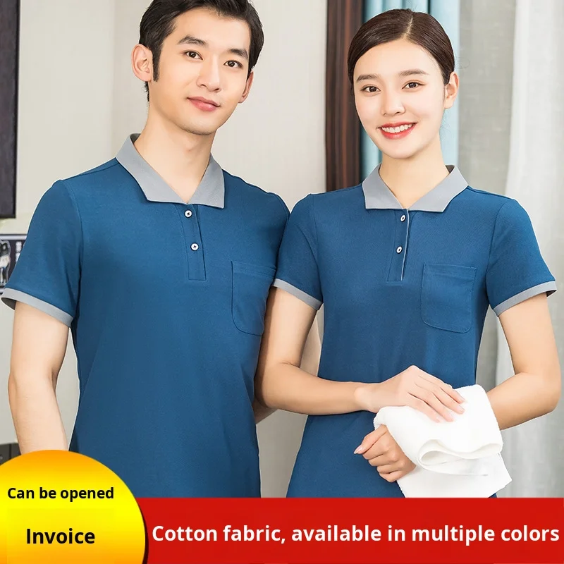 Customizable Short-Sleeve Hotel Staff T-Shirt Summer Waiter Cleaning Uniform Housekeeping Appliance Workwear
