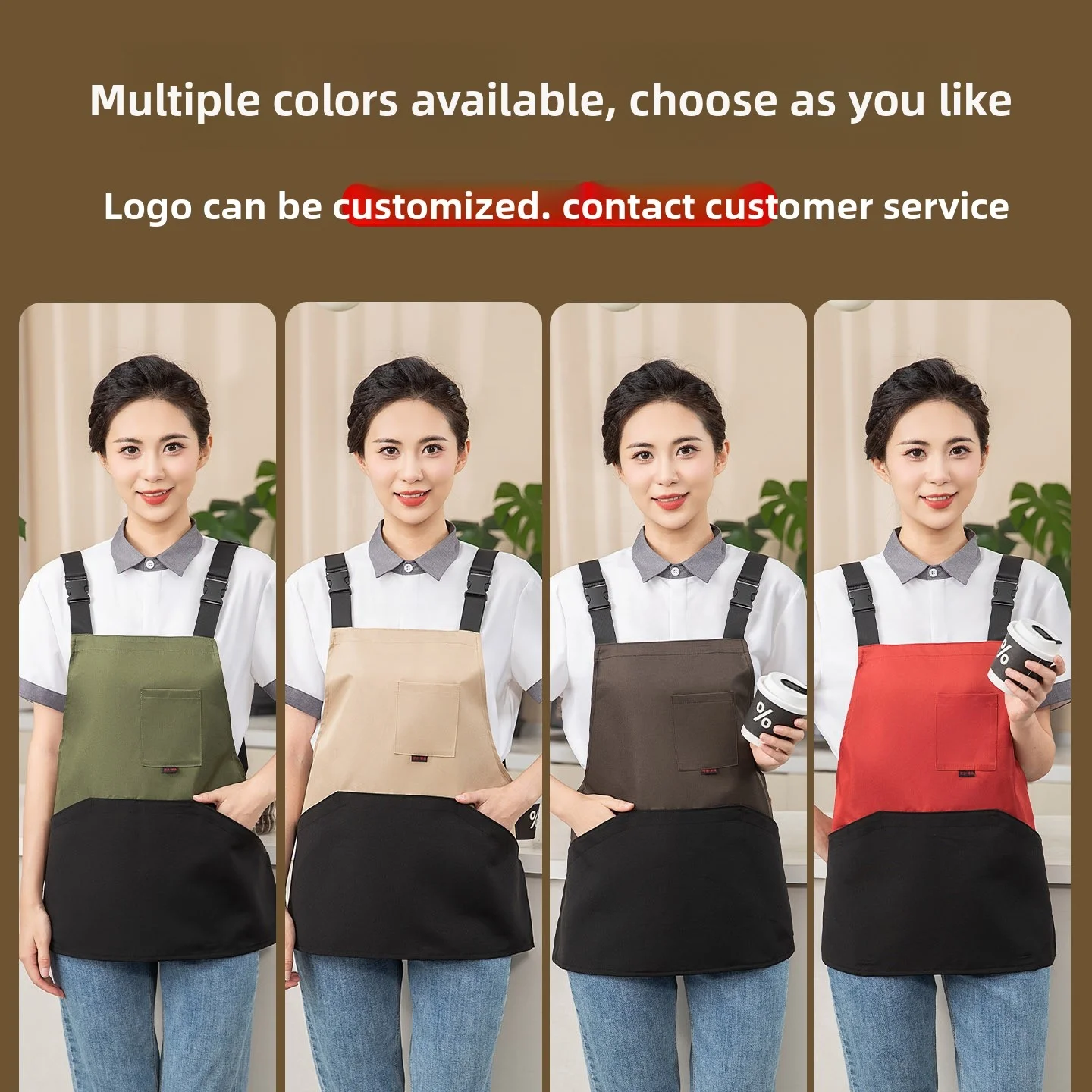 2026 Customizable Kitchen Home Use Canvas Apron Petite Women Restaurant & Bar Uniforms with Logo Printing New Model