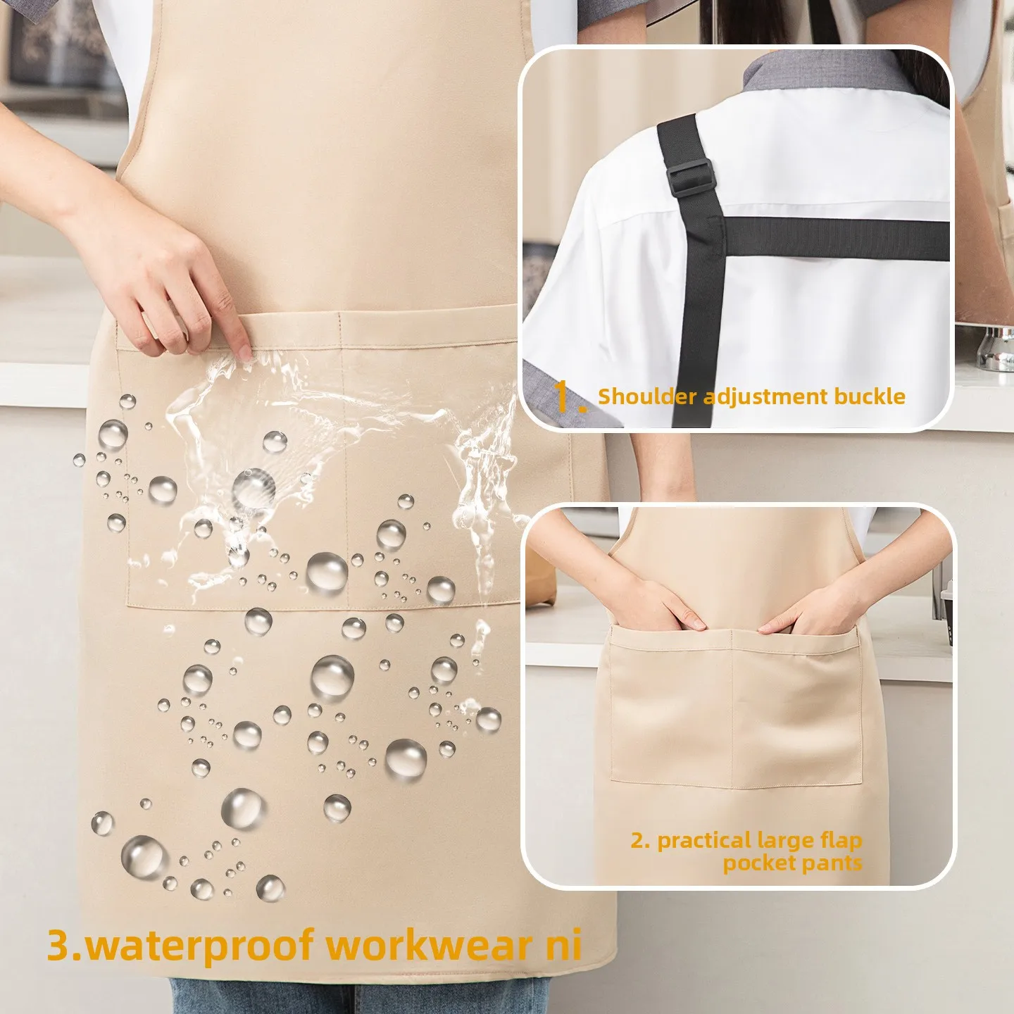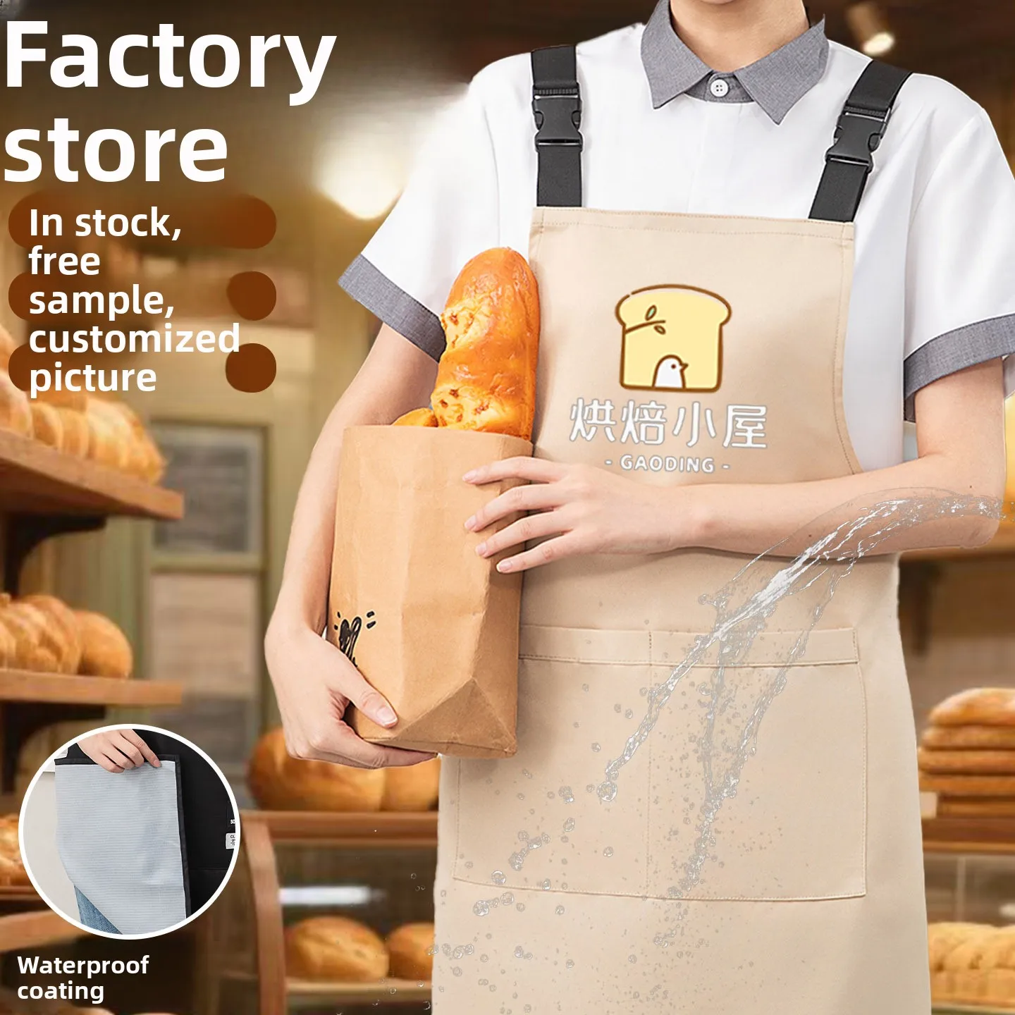 Women's Waterproof and Oil-Proof Kitchen Apron with Custom Logo Catering-Specific Work Clothes for Restaurants Bars Uniforms