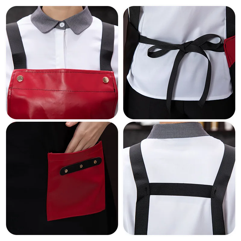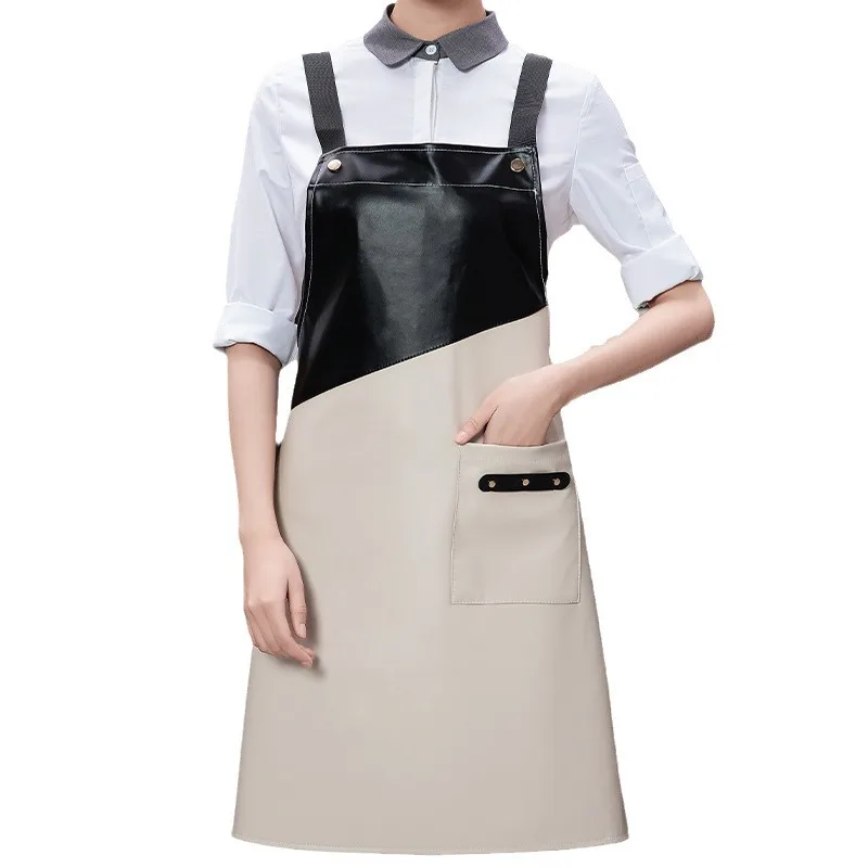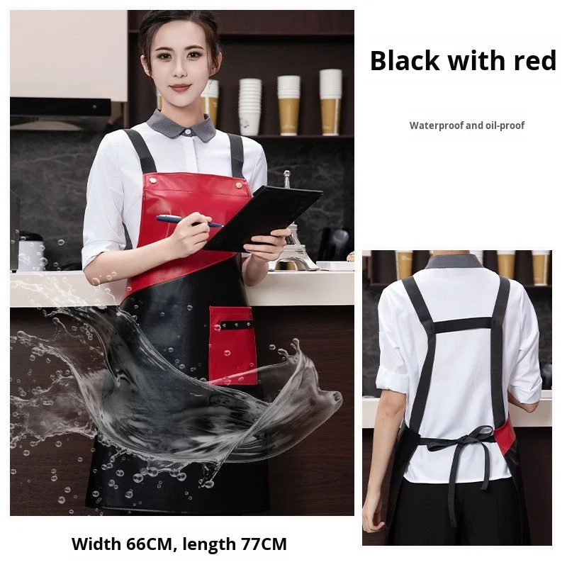 Women's New Super Waterproof Oil-Proof Fleece-Lined PU Leather Apron Kitchen Dishwashing Workwear for Restaurant & Bar Uniforms