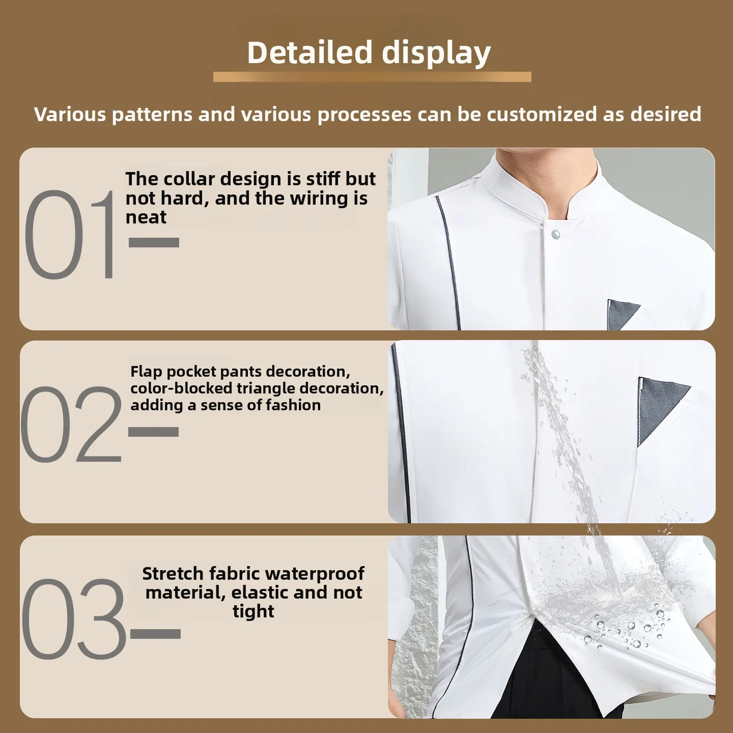 Autumn Winter Long-Sleeved Chef Tops Waterproof Elastic Work Clothes for Hotels Bakeshops Restaurants Cross-Border Foreign Trade