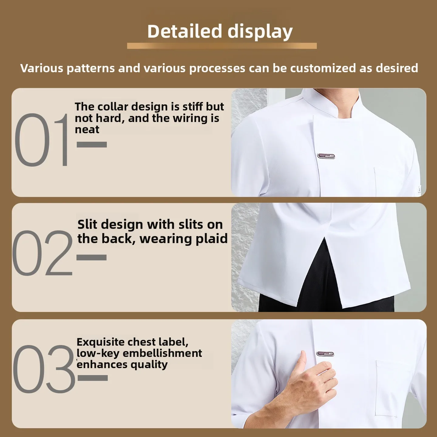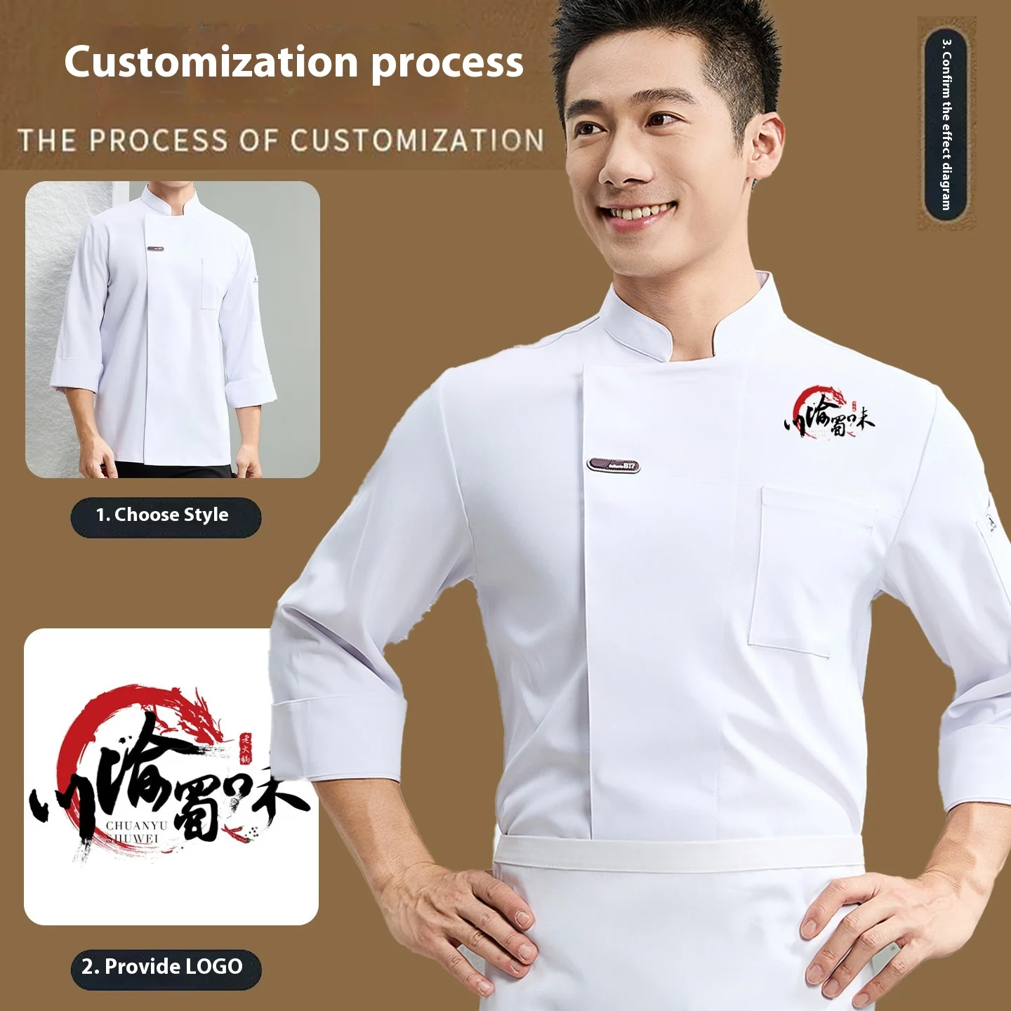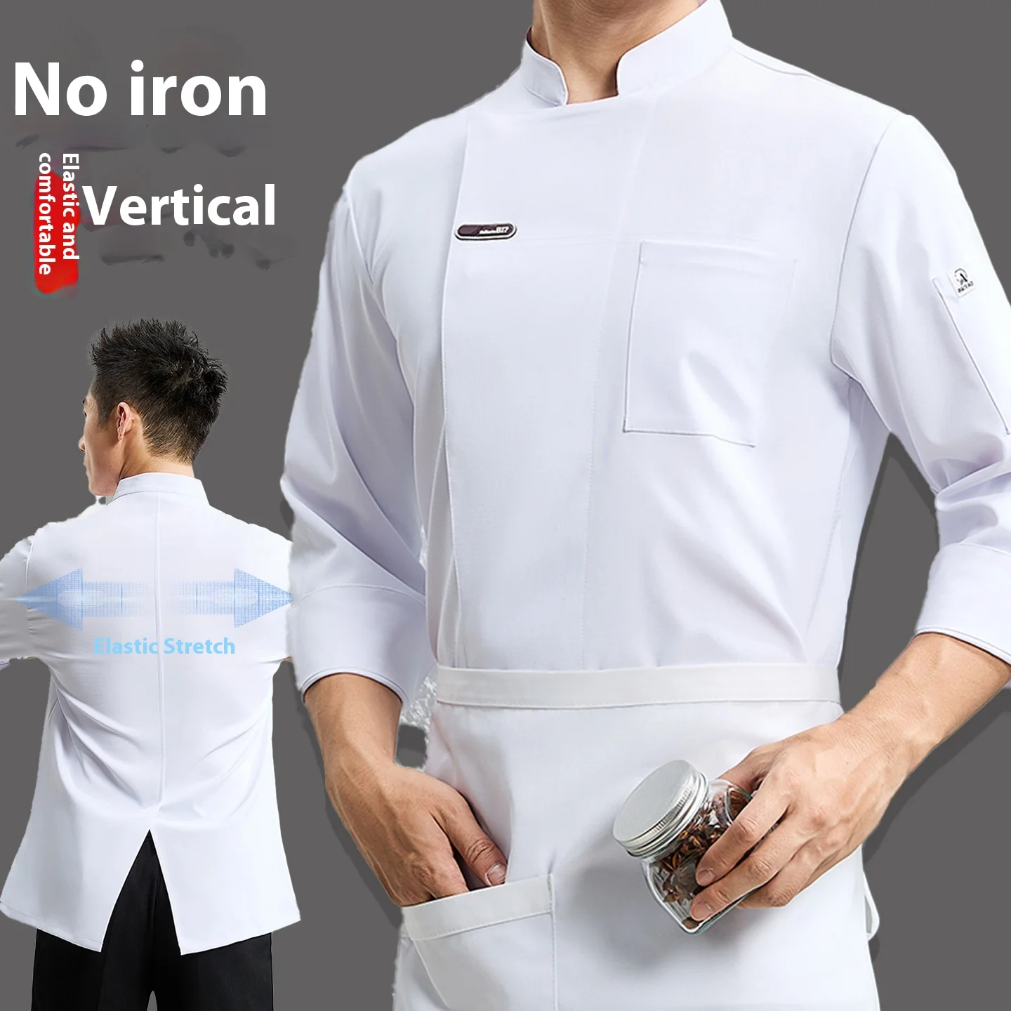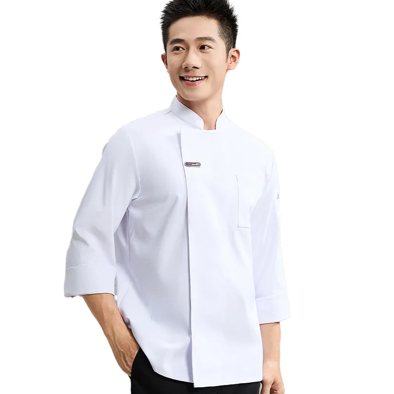 High-End Elastic Chef Shirt Printed Long-Sleeved Work Clothes for Hotel Catering Restaurant Kitchen Summer Short-Sleeved Uniform