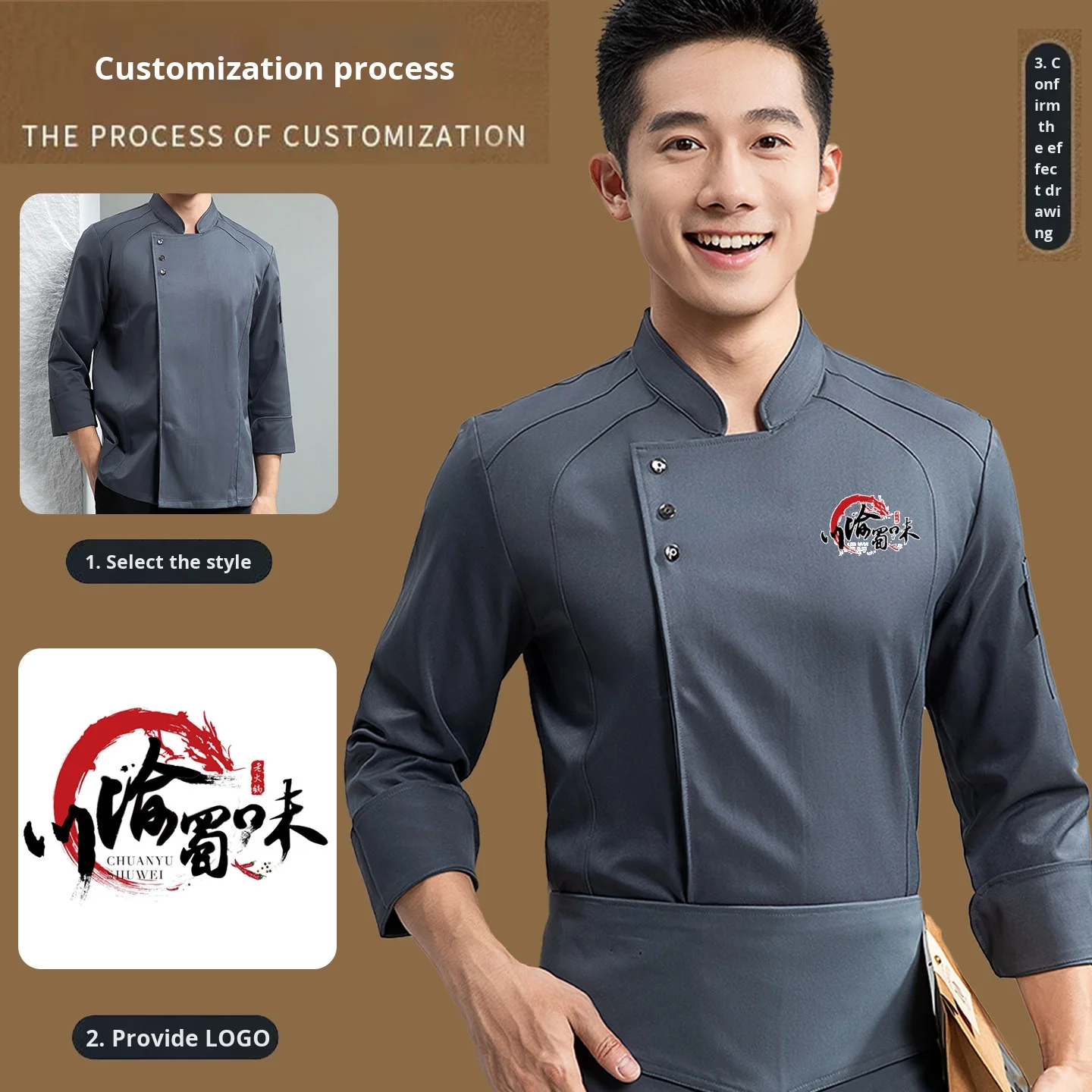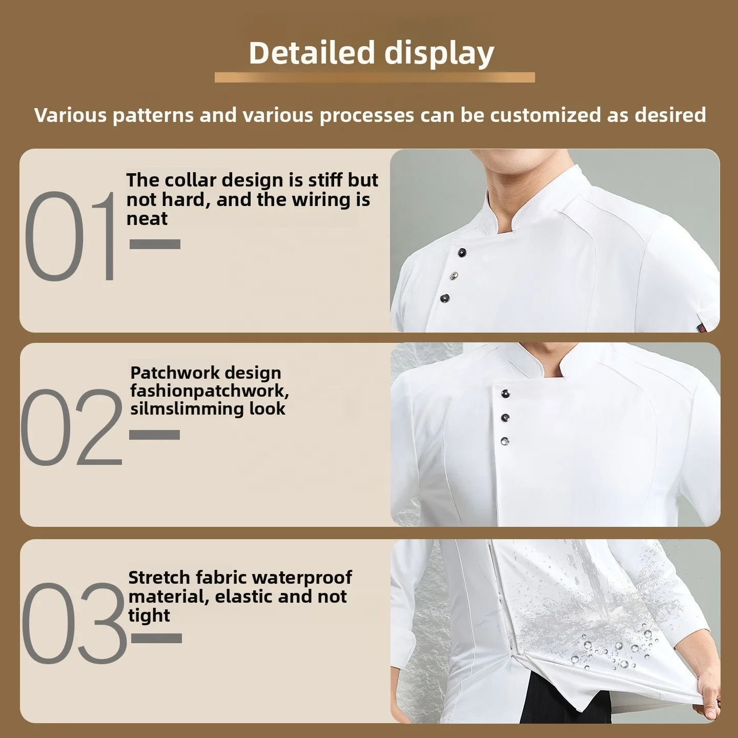Autumn Winter Long Sleeve Chef Uniform Set Elastic Waterproof Catering Workwear for Hotels Restaurants Baking-Top Pattern