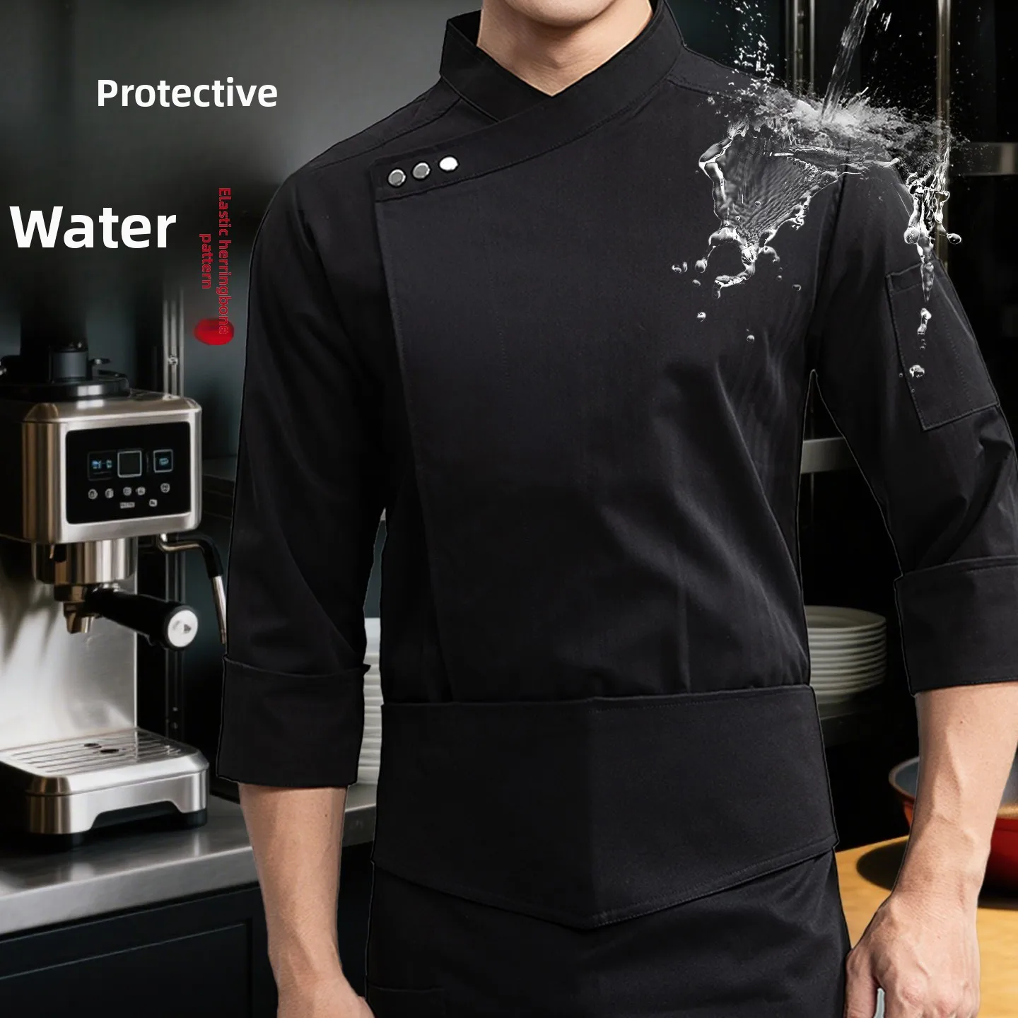 Women's High-End Stretch Waterproof Western Restaurant Chef Work Clothes Autumn Winter Long-Sleeved Kitchen Apparel for Cooking
