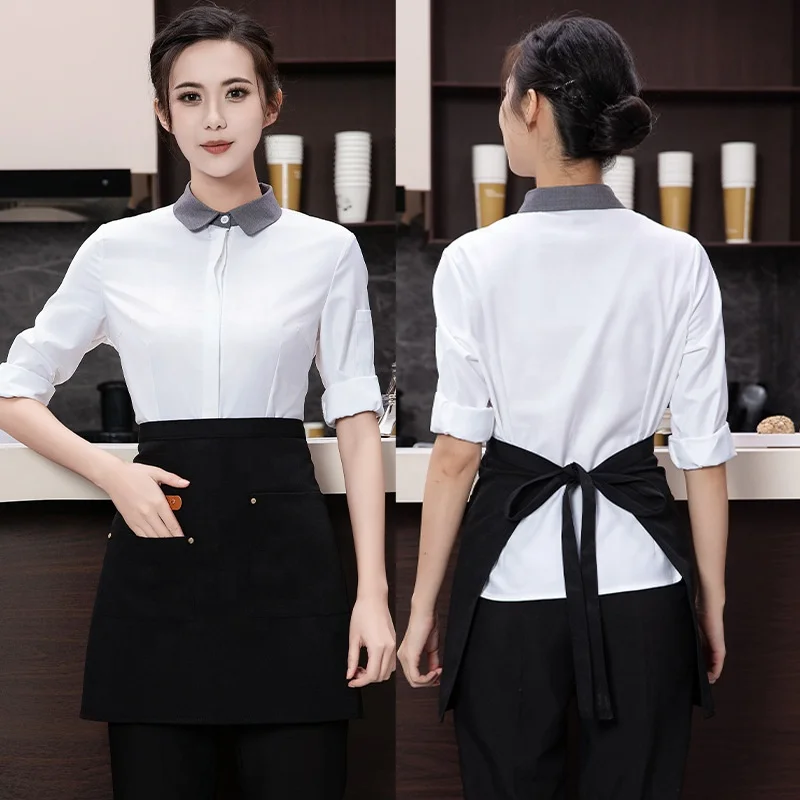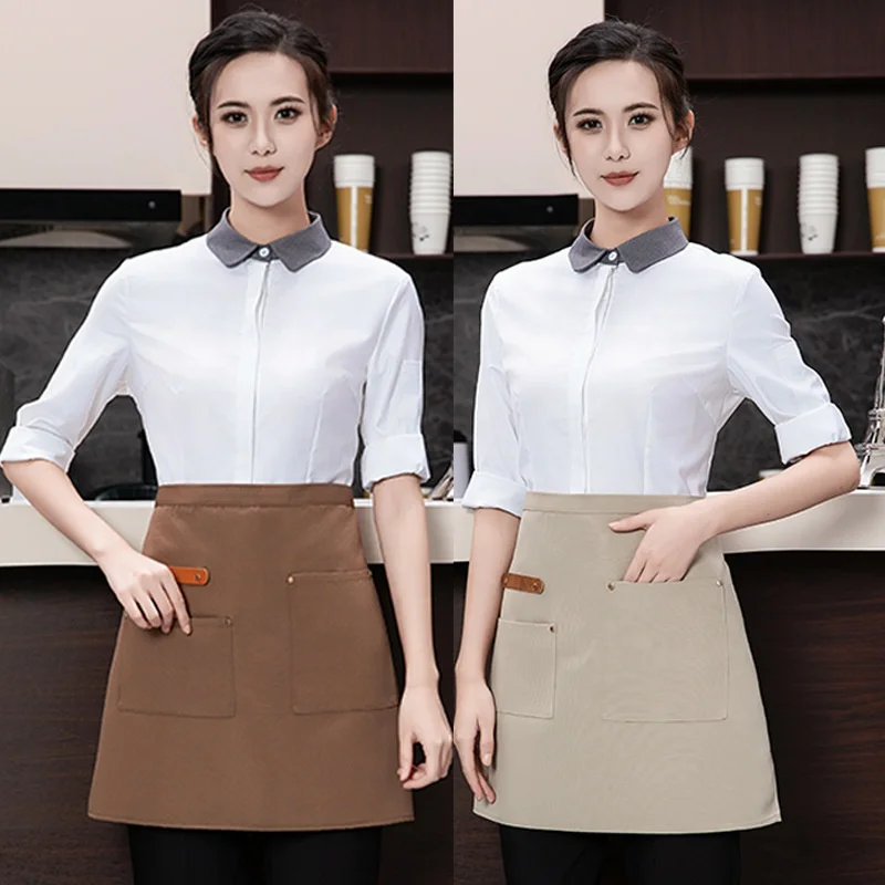Female Half-Length Waterproof Canvas Apron for Waitresses and Chefs for Milk Tea Restaurants and Bar Uniforms