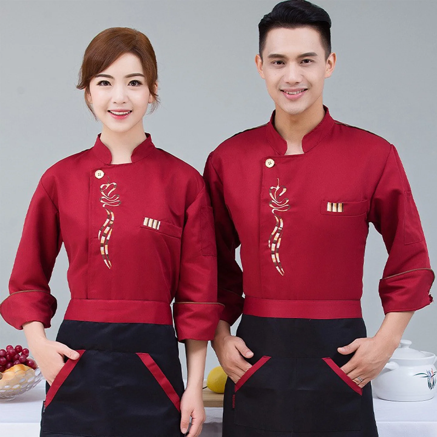 Autumn Winter Men's and Women's Long-Sleeved Twill Catering Work Clothes for Bar Restaurant Hotel & Cake Baking