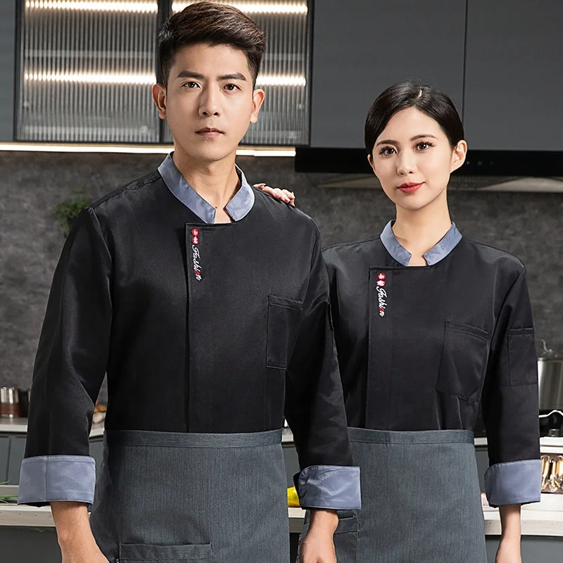 High-End Long-Sleeved Men's Chef Uniform for Western Restaurants Hot Pots Print Kitchen Work Clothes Suit for Hotels & Bars
