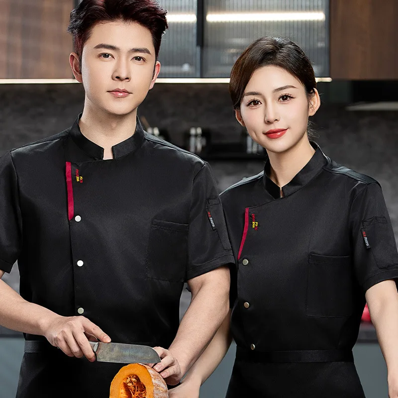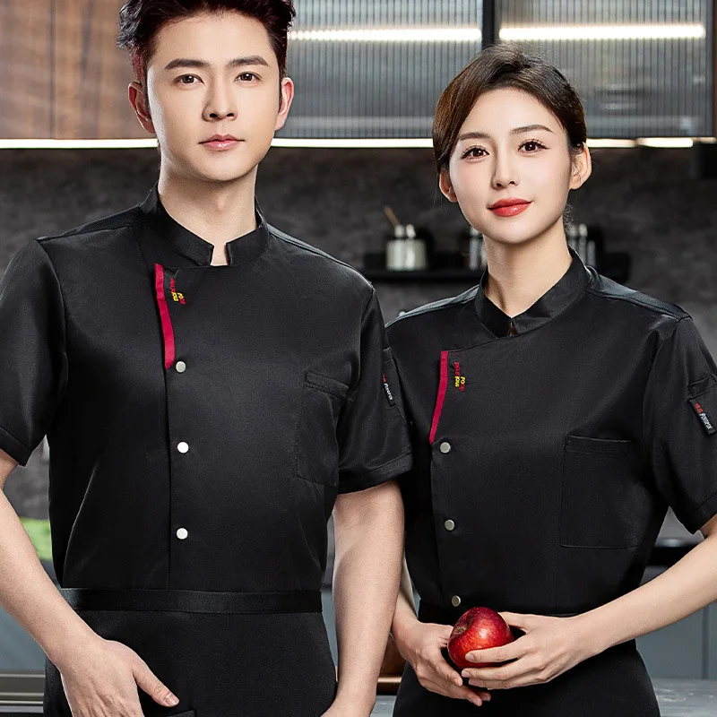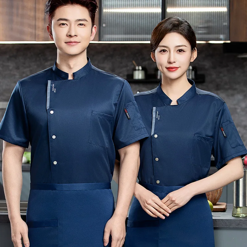 Summer Twill Short-Sleeved Chef Uniforms Thin Breathable Mesh Catering Hotel Restaurant Canteen Work Clothes for Cake Cooking