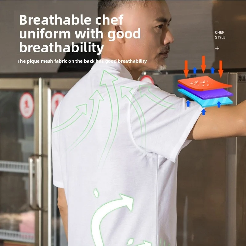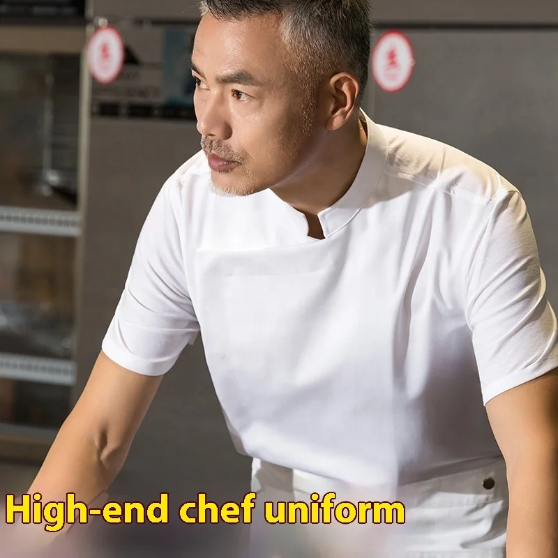 High-End Short-Sleeved Summer Boutique Chef Uniforms for Men for Restaurant Work Spring/Summer Baking Kitchen Work Canvas