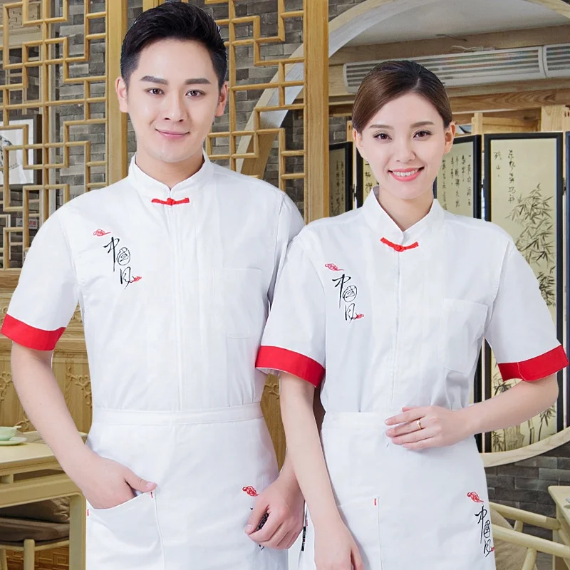 Chinese Style Breathable Thin Kitchen Apparel Short-Sleeved Summer Chef Work Clothes for Men Women for Cooking Restaurant Bar