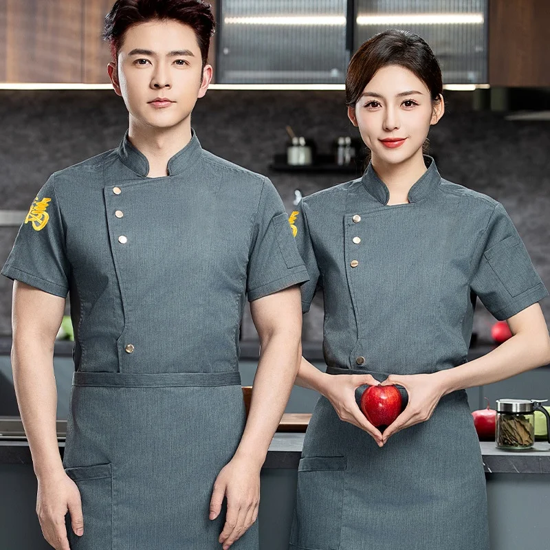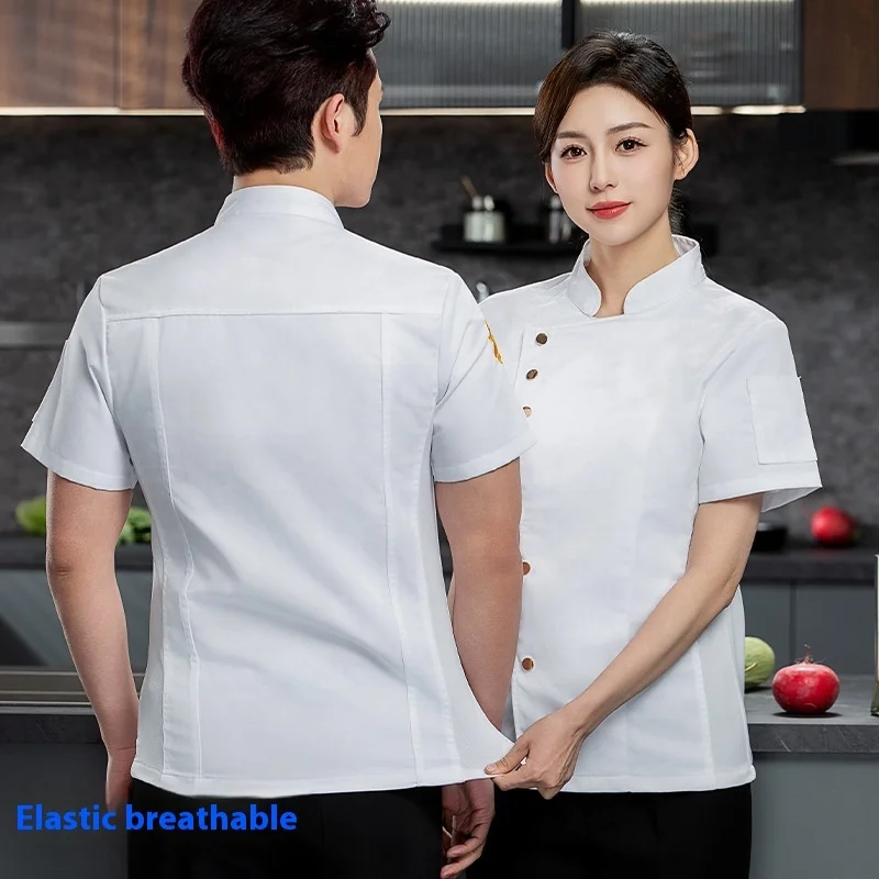 Men's High-End Summer Chef Work Clothes Large Size Cool Armpit Breathable Mesh Woven Restaurant Hotel Catering Aprons Cooking