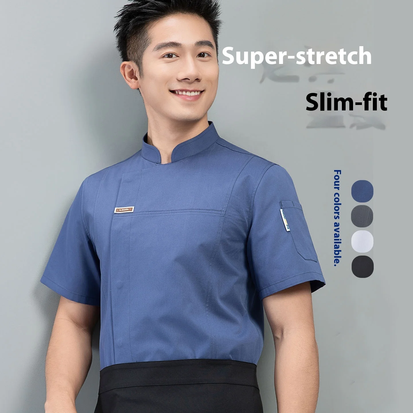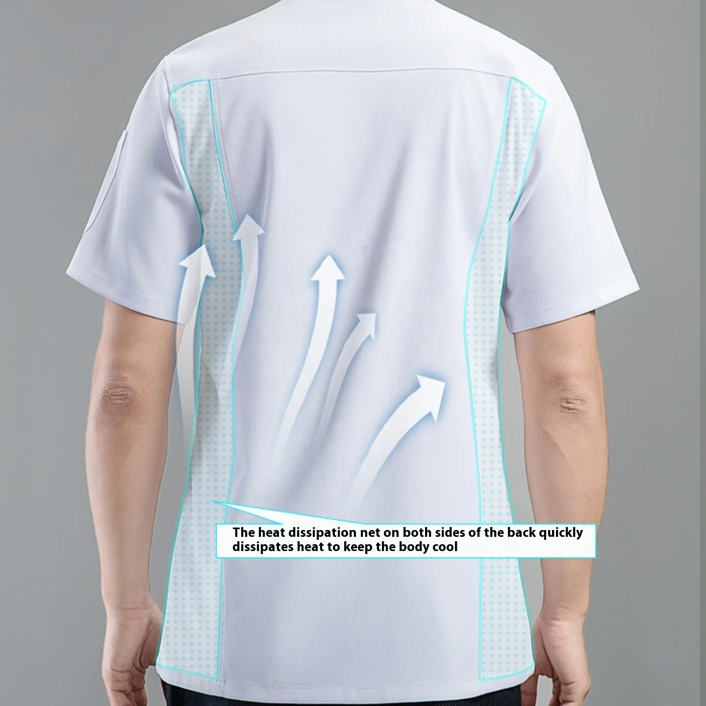 Unisex High-End Summer Short Sleeve Chef Uniform Customizable Breathable Ice Silk Mesh Restaurant & Bar Workwear
