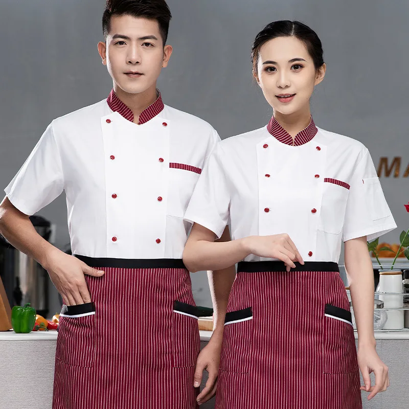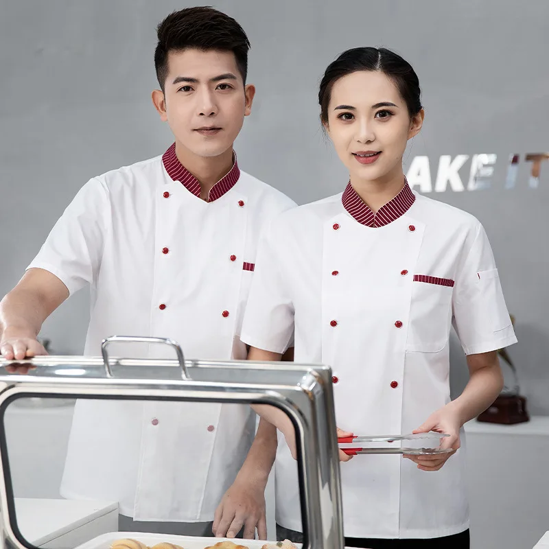 Men's and Women's Chef Workwear Autumn Winter Twill Outfit with Long Sleeves Summer Short Sleeves for Restaurants and Schools