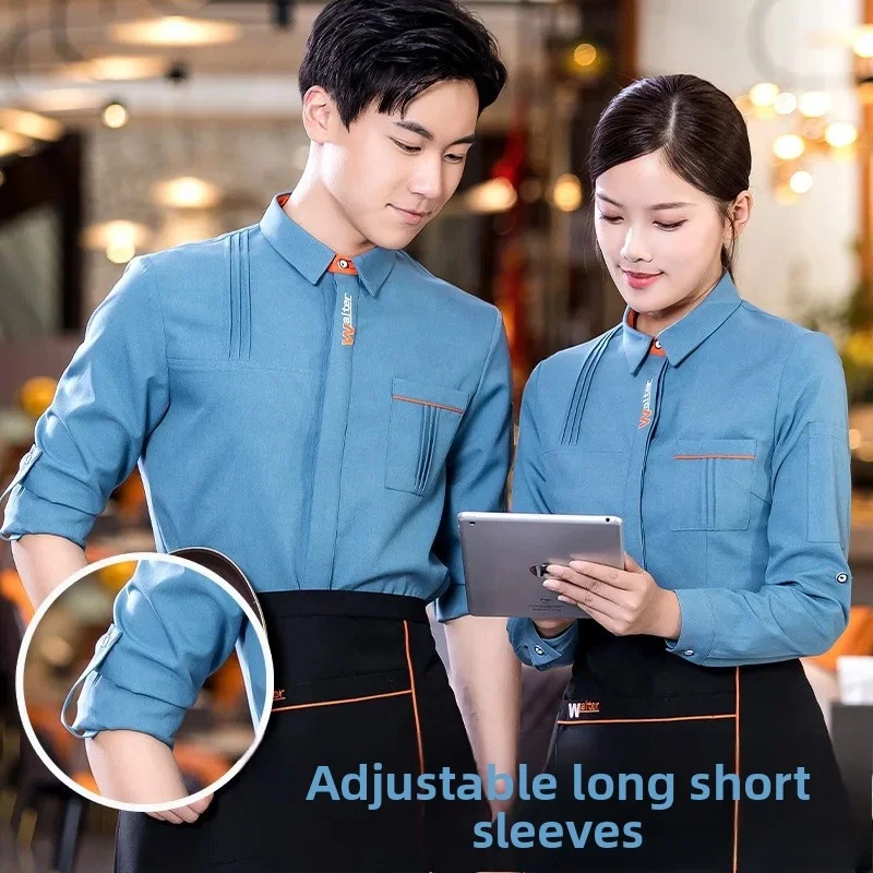 Customizable Hotel Waiter for Men Women Summer Tops for Reception Staff Short-Sleeved for Chinese Hot Pot Catering Restaurants