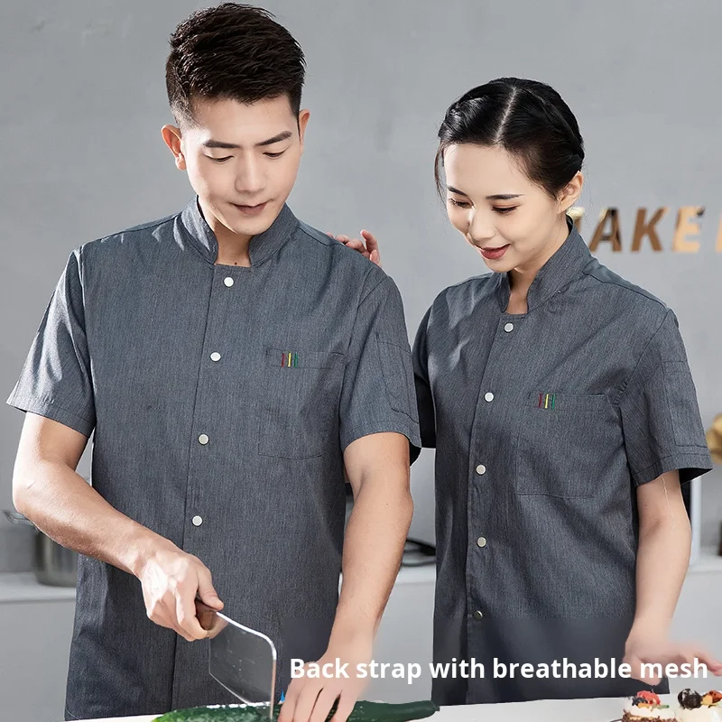Cross-Border Chef Uniforms for Men Women Thin Breathable Summer Work Clothes Short-Sleeved Hotel Restaurant Food Service Kitchen