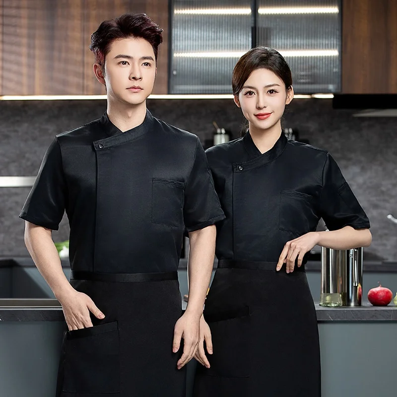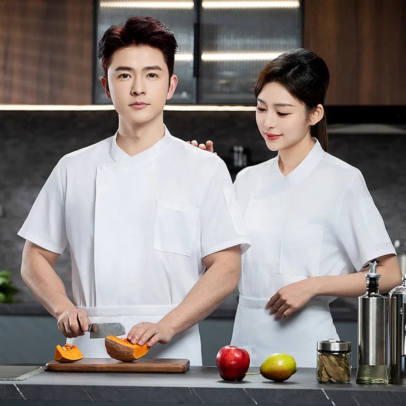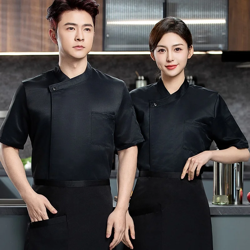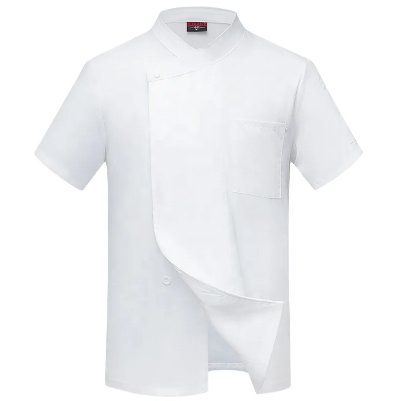 Men's High-End Summer Chef Uniform Slant Collar Solid Color Breathable Large Size Accessory for Catering Restaurants Bars
